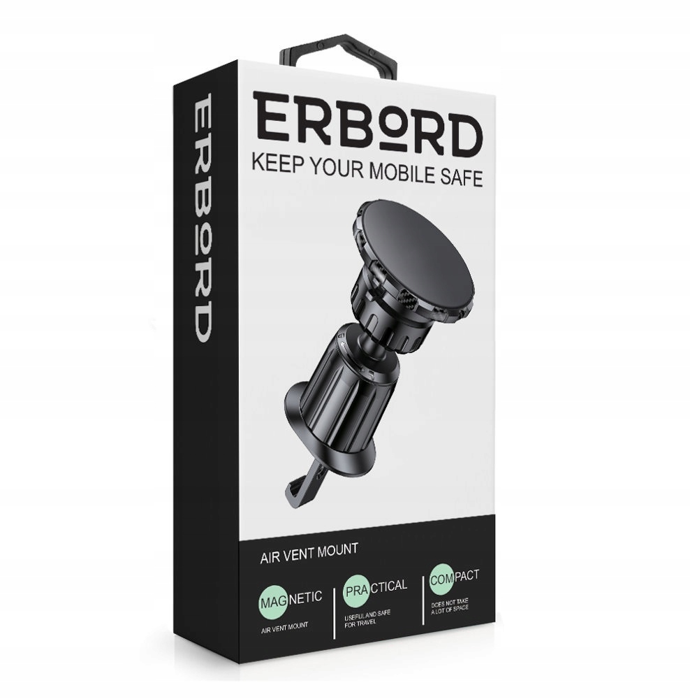 Це ідеальне рішення для тих, хто хоче завжди мати свій смартфон під рукою. Магнітний тримач ERBORD дозволяє легко і безпечно прикріпити телефон до вентиляційного отвору в автомобілі, щоб ви могли користуватися навігацією, музикою або голосовими викликами, не відриваючи очей від дороги. Завдяки обертовій головці є можливість регулювати кут огляду. Кріплення решітки універсальне - підходить для більшості повітрозабірників в автомобілях. Виготовлений з високоякісних матеріалів, забезпечує довговічність і естетичність. Тримач легко збирається і розбирається і не залишає слідів на решітці або телефоні. Магнітний тримач ERBORD C154 упакований в елегантну коробку виробника.