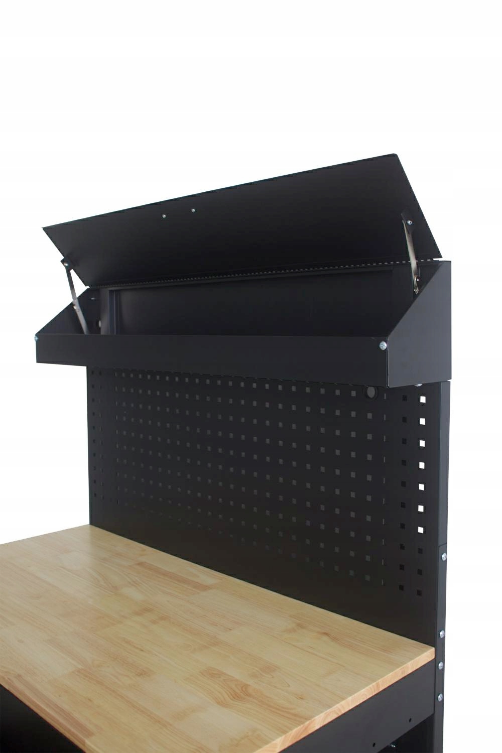 - Суцільна металева конструкція, перфорована сталева стінка із закритим сховищем, 6 бічних гачків у наборі, 3 підшипники, дерев’яна верхня частина 2 см товщиною.