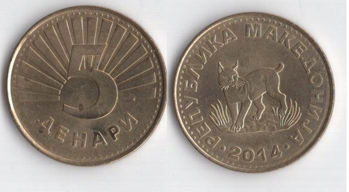 МАКЕДОНІЯ 2014 5 НЕМАГНІТНИХ ДЕНАРІВ