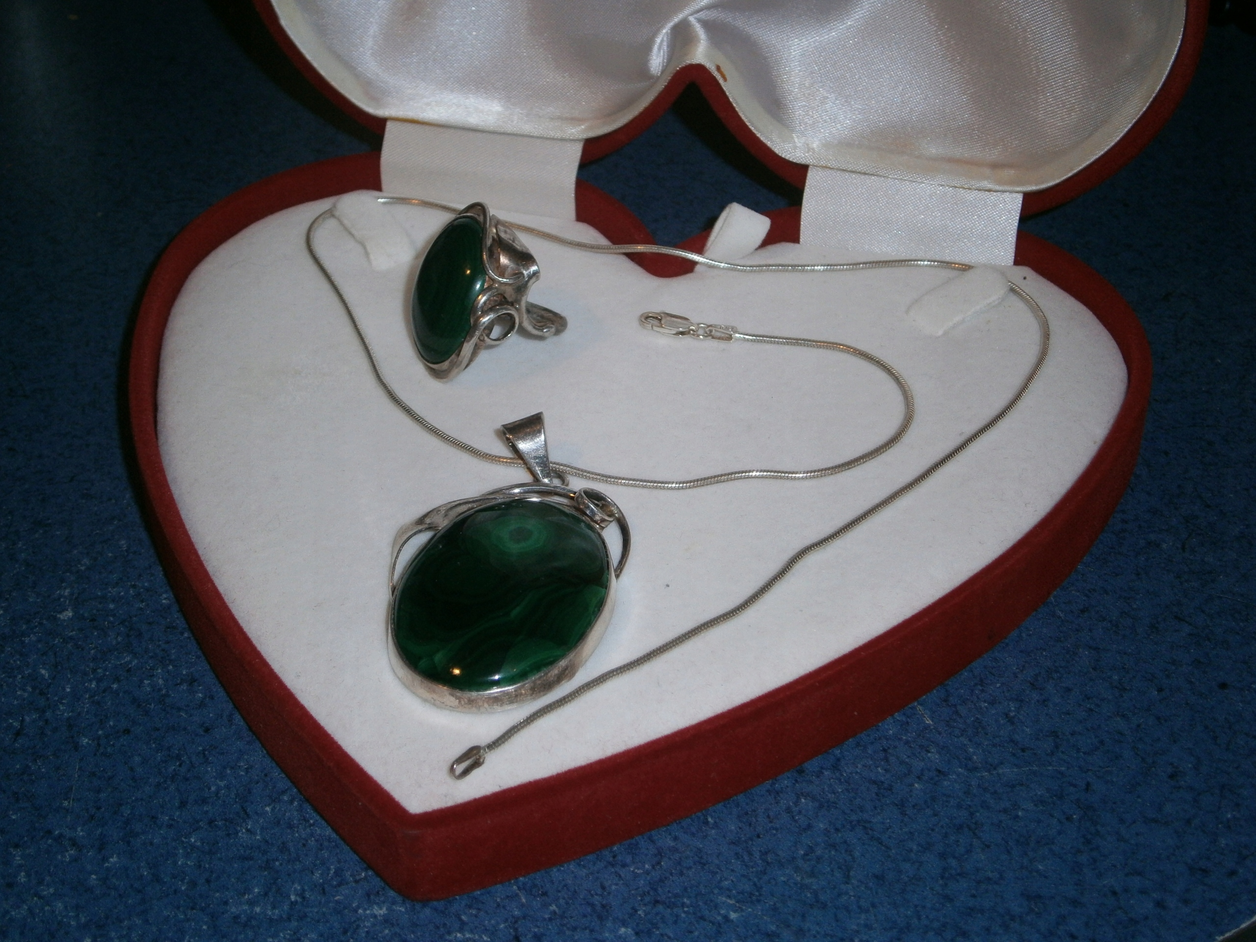 MALACHIT WISIOR PIERŚCIEŃ ŁAŃCUSZEK KPL SREBRO 925