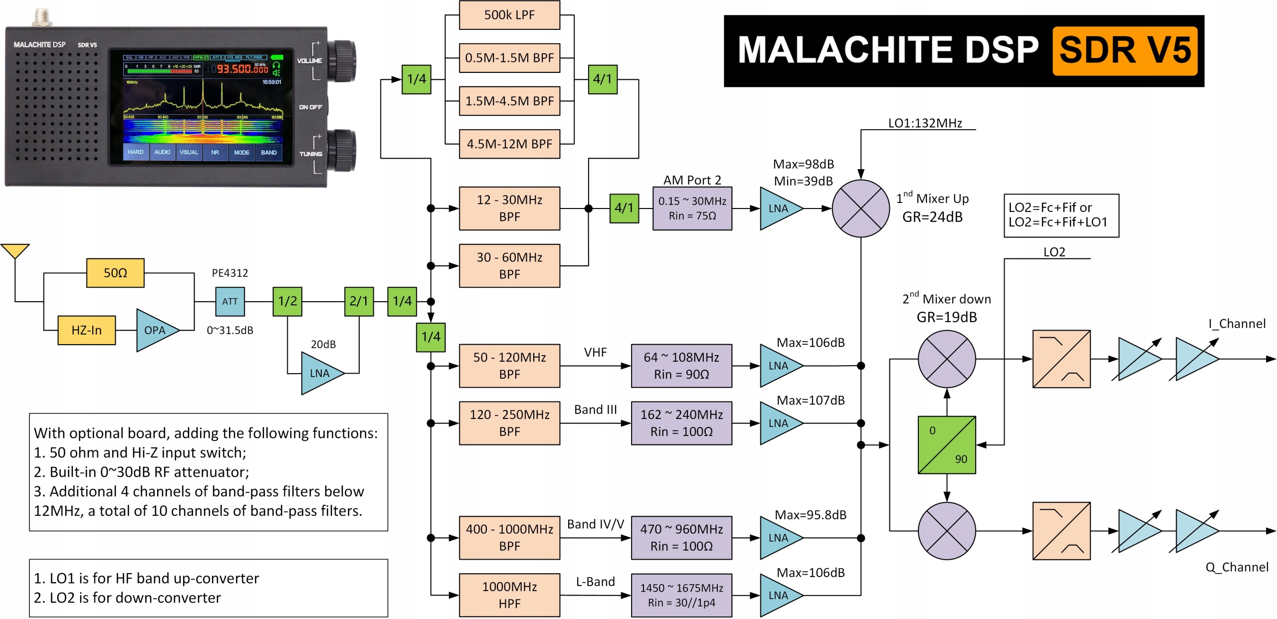 Odbiornik SDR Malachite V5 10kHz-2GHz z ekranem dotykowym i akumulatorem