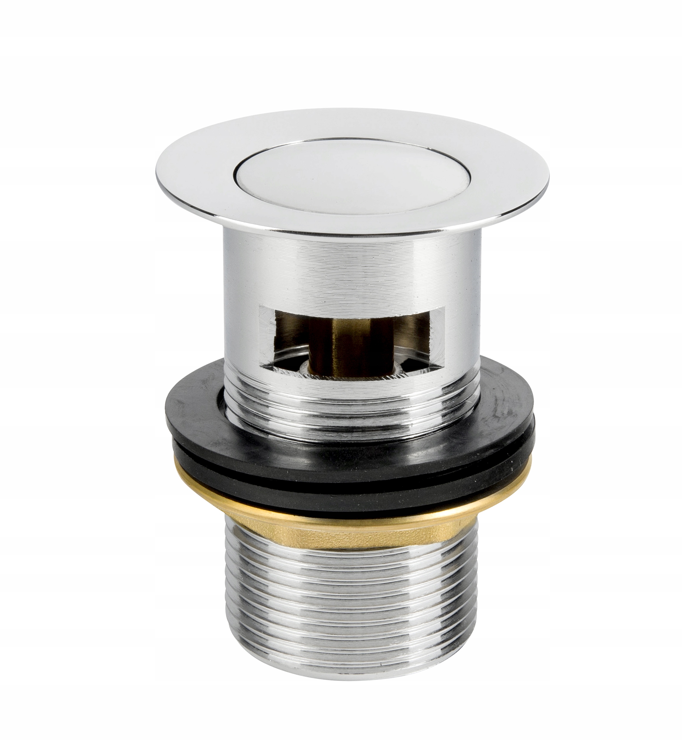 Слив з автоматичною заглушкою з латуні, хромований або чорний. Замінюють стандартні водостоки з гумовою пробкою, оснащені автоматичним механізмом клік-клак. Призначені для гравітаційних систем водовідведення в будівлях. Особливо рекомендується для умивальників, душових піддонів і біде