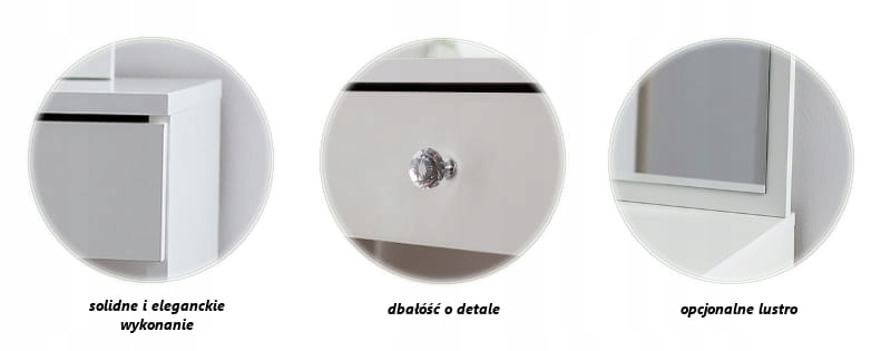Сучасний косметичний туалетний столик чудово впишеться в інтер'єр спальні або салону краси. Продумане рішення створить зручне місце для нанесення макіяжу або стане функціональним декоративним елементом. Туалетний столик також можна використовувати як невеликий письмовий столик в кімнаті підлітка. Меблі оснащені ящиком для зберігання прикрас, тіней або іншої косметики. Мінімалістичний дизайн дає великі можливості та свободу в розташуванні виробу.