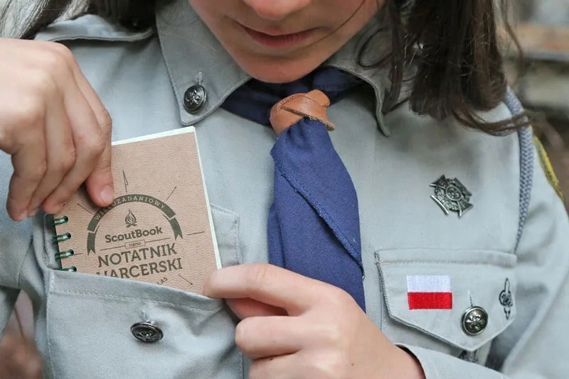 Скаутський блокнот – це практичний предмет, який стане в нагоді кожному – керівнику групи, помічнику, а також скауту-початківцю. Це може бути на скаутських зборах, у туристичному поході чи на брифінгу особового складу. Блокнот компактний і легко поміститься в кишені. Сторінки нанизані на металеву спіраль - таке рішення дозволяє повністю розкрити зошит, не згинаючи сторінки, і, при необхідності, ми можемо легко і швидко вирвати будь-який аркуш паперу з зошита.