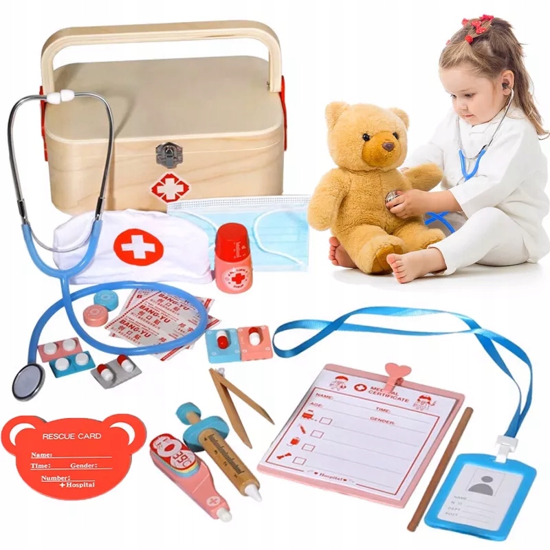 МАЛЕНЬКИЙ ЛІКАР ДОКТОР ДЕРЕВ'ЯНИЙ МЕДИЧНИЙ НАБІР ДЛЯ ДІТЕЙ СТЕТОСКОП