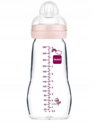 Щоб батькам було легше щодня піклуватися про своїх дітей, скляна пляшка MAM Feel Good Glass Bottle виготовлена з термостійкого скла найвищої якості. Пустушка плоска і м'яка, нагадує груди матері, що дозволяє дитині вільно смоктати і знижує ризик колік.