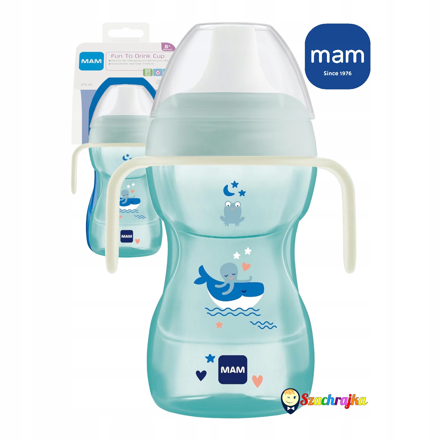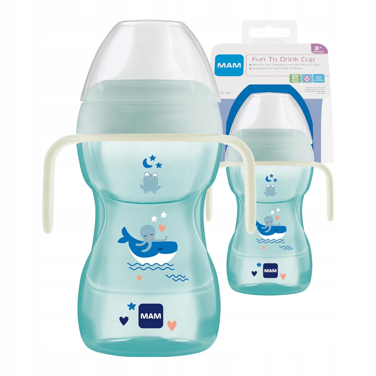MAM Fun to Drink Cupце інноваційна тренувальна чашкадля дітей від 8 місяців, чий твердий рот допомагає природно переходити до пиття з окуляри.
