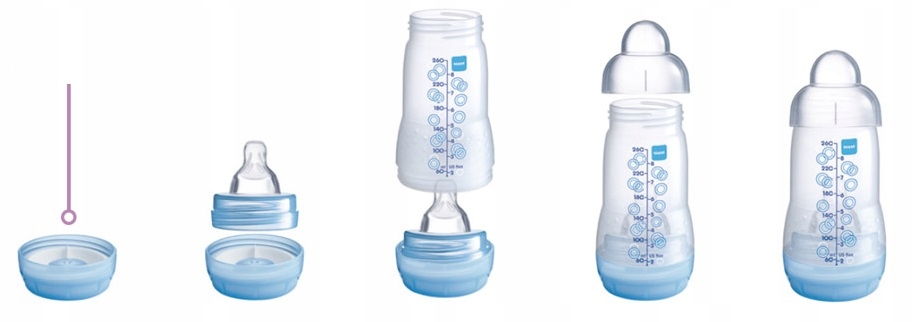 - b> проведені мікробіологічні тести підтвердили ефективність і функціональність пляшки MAM, що самостерилізуються (наповніть нижню ємність водою та готуйте в мікрохвильовій печі приблизно 3 хвилини)