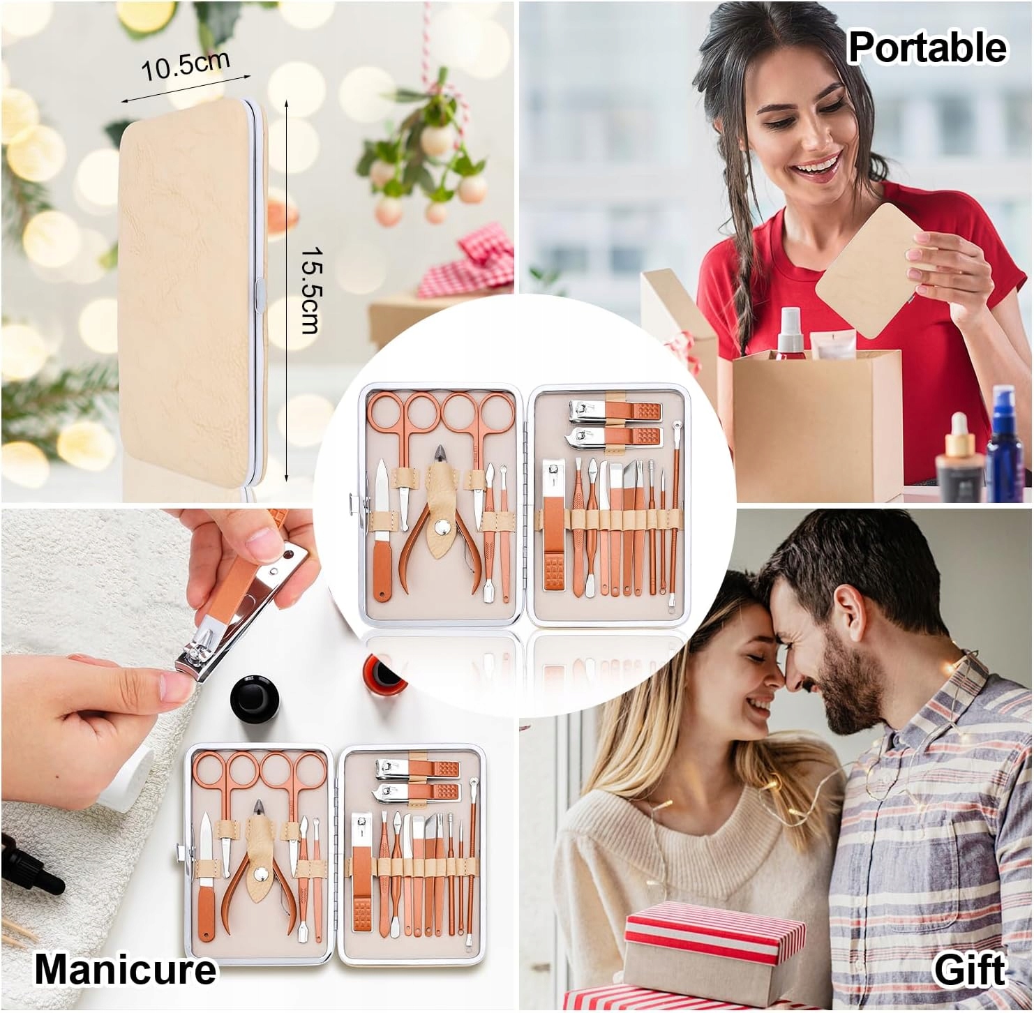 Повний набір з 18 предметів містить усі необхідні інструменти для догляду за руками, ногами та обличчям - від фрез і пилок до пінцетів і ножиць. Ідеально підходить для людей, які цінують точність, порядок і якість виконання.
