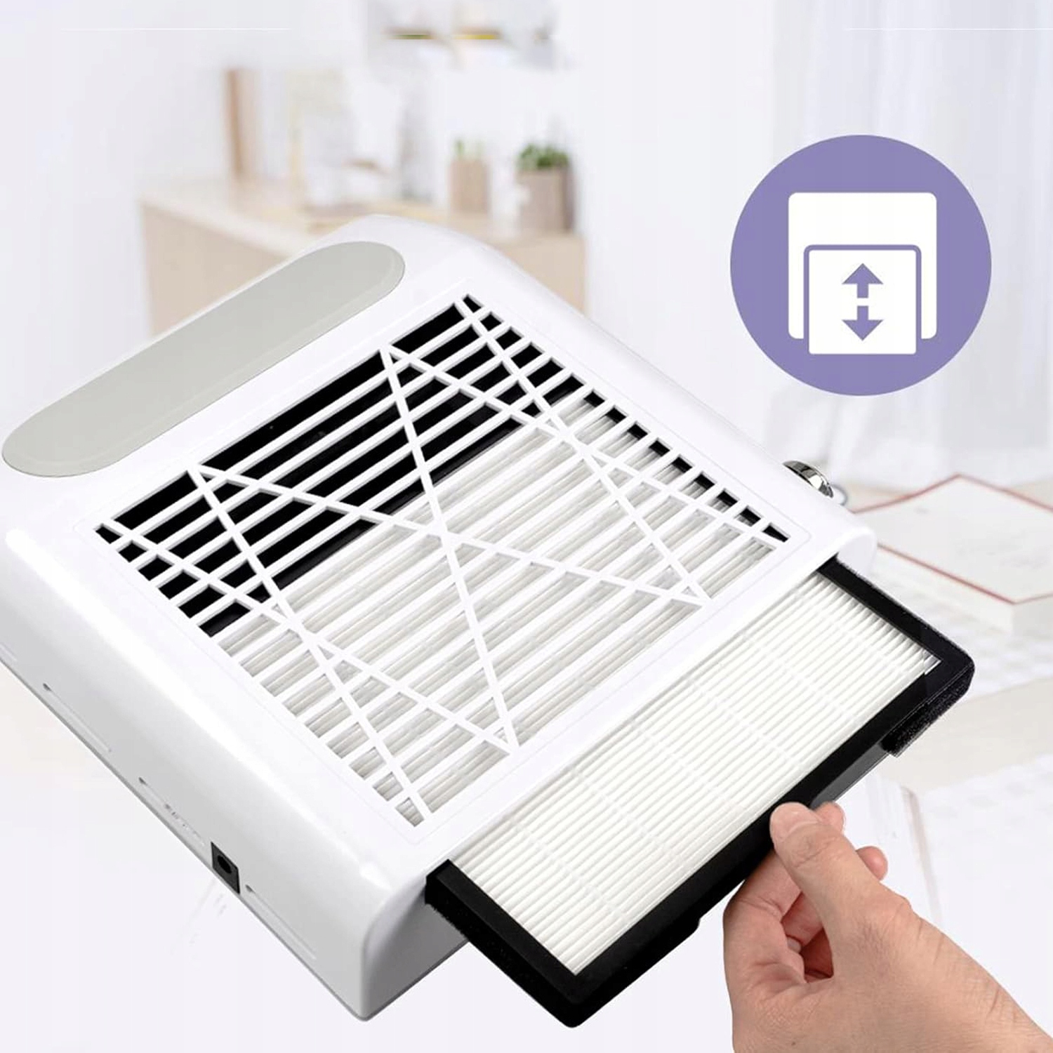 - Пилосос для нігтів із нижнім вентилятором охолодження та рівномірною вентиляцією забезпечує пилосос плавно вентилюється і не виділяє тепла після тривалого використання, таким чином подовжуючи термін служби пристрою.