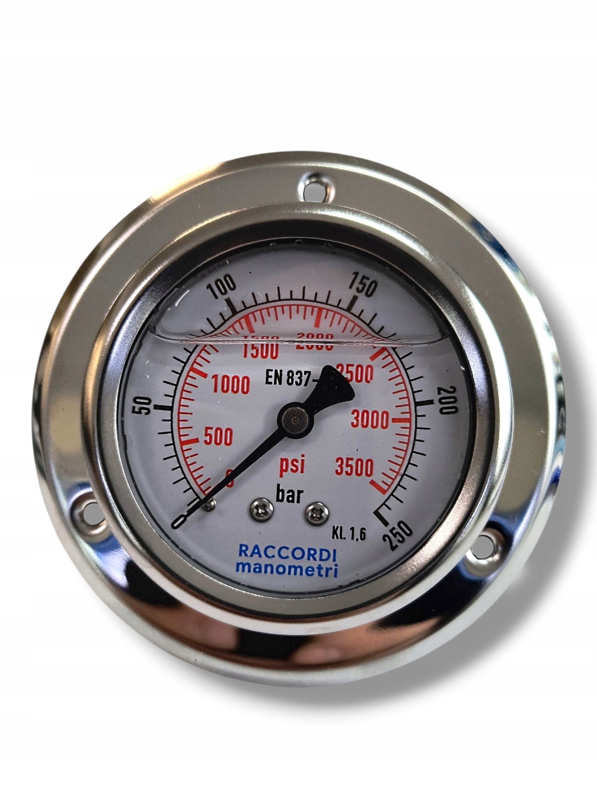 Гліцеринове наповнення ефективно гасить вібрації, забезпечуючи плавні та стабільні показники тиску, що особливо важливо в системах, які піддаються динамічним навантаженням. Три монтажні отвори в корпусі забезпечують швидкий і безпечний монтаж панелі, що полегшує інтеграцію манометра в існуючі установки. Пристрій використовується, зокрема, в опалювальній, газовій та холодильній промисловості та скрізь, де потрібен постійний і точний контроль високого тиску.