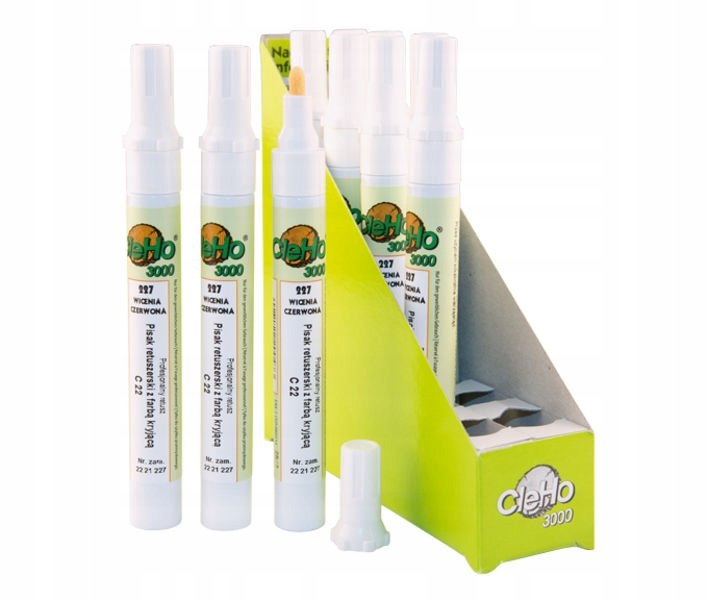 Очистіть поверхню, призначену для нанесення лаку, знежирте ділянку рідиною C51 або C52 залежно від типу поверхні. Покрийте краї або відремонтовані ділянки фарбою за допомогою ретушної ручки C22 непрозорою фарбою відповідного відтінку. Операцію можна повторити щонайменше через 15 секунд. У випадку площі матова, ви можете матувати нанесену фарбу, протерши її губкою Magic symbol C66. Надлишки фарби можна видалити за допомогою рідин C51. Відремонтована поверхня не потребує додаткового захисту.