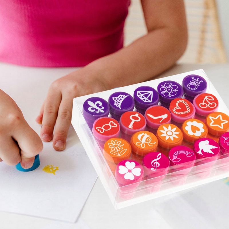 - ✅ Набір містить 20 різнокольорових штампів у різноманітних дівчачих дизайнах.