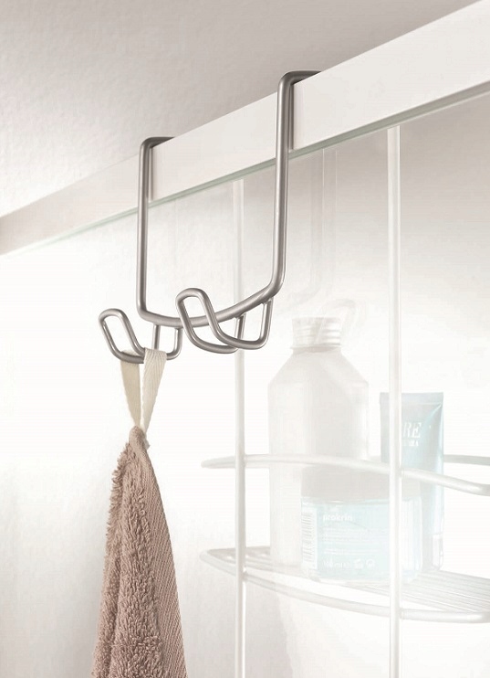полиця, оснащена 2 практичними зовнішніми гачками для зберігання халатів або рушників та 2 внутрішніх гачків для губків або аксесуарів для ванної кімнати.