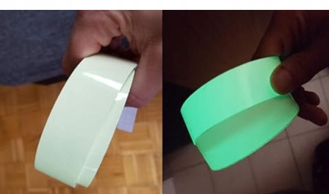 Односторонні клейкі фотолюмінесцентні стрічки з ПВХ плівки. Вони покращують видимість електричних вимикачів, замків, розеток і поручнів у темряві.