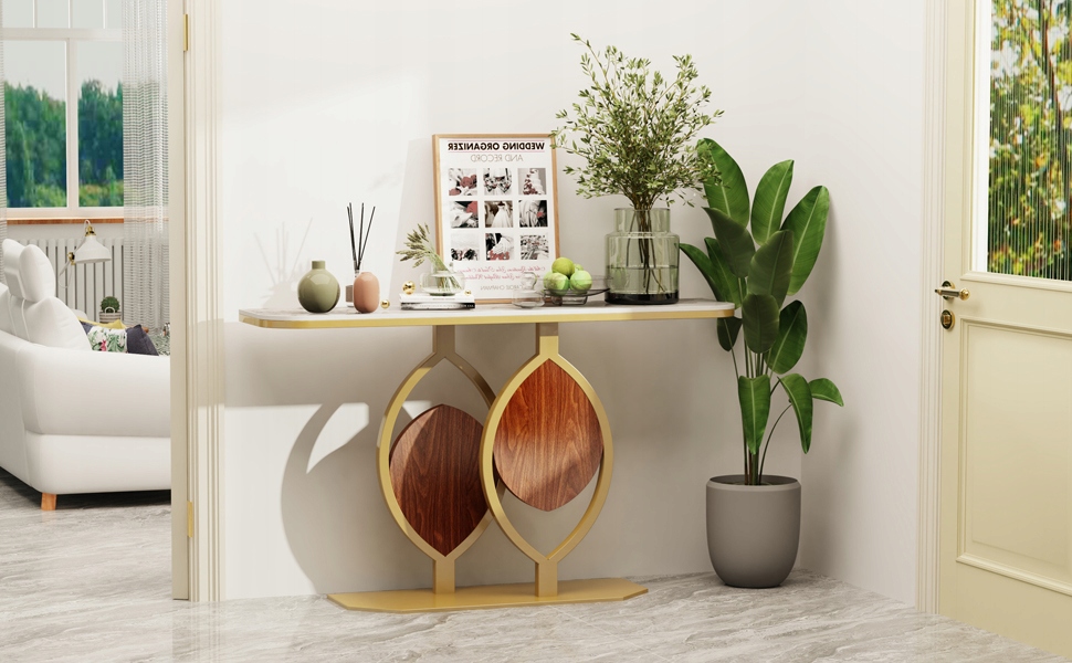 Розкішний консольний стіл: цей елегантний консольний стіл стане вашим найкращим вибором, якщо ви шукаєте меблі, щоб оживити свій вхід чи вітальню, зроблений зі стільниці з спеченого каменю, він характеризується природним текстури та краса мармуру, вища міцність і щільність, непроникна, стійка до подряпин поверхня при високих температурах до 1200 ℃.