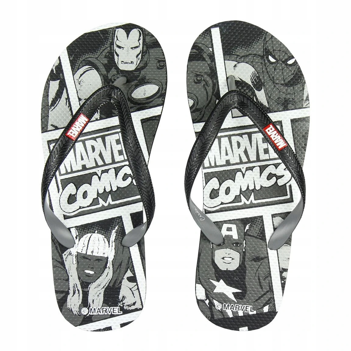 Привабливі в'єтнамки з мотивом чорно-білих коміксів від відомої студії MARVEL, в яких точно не заблукаєш у спекотні літні дні.
