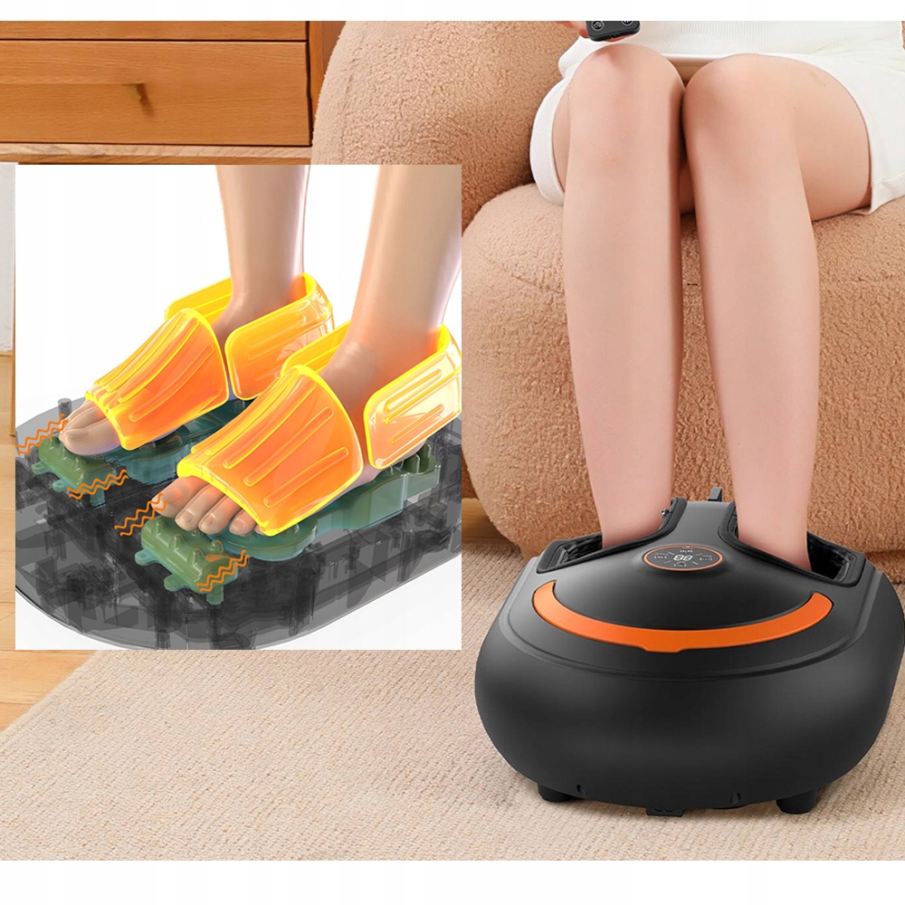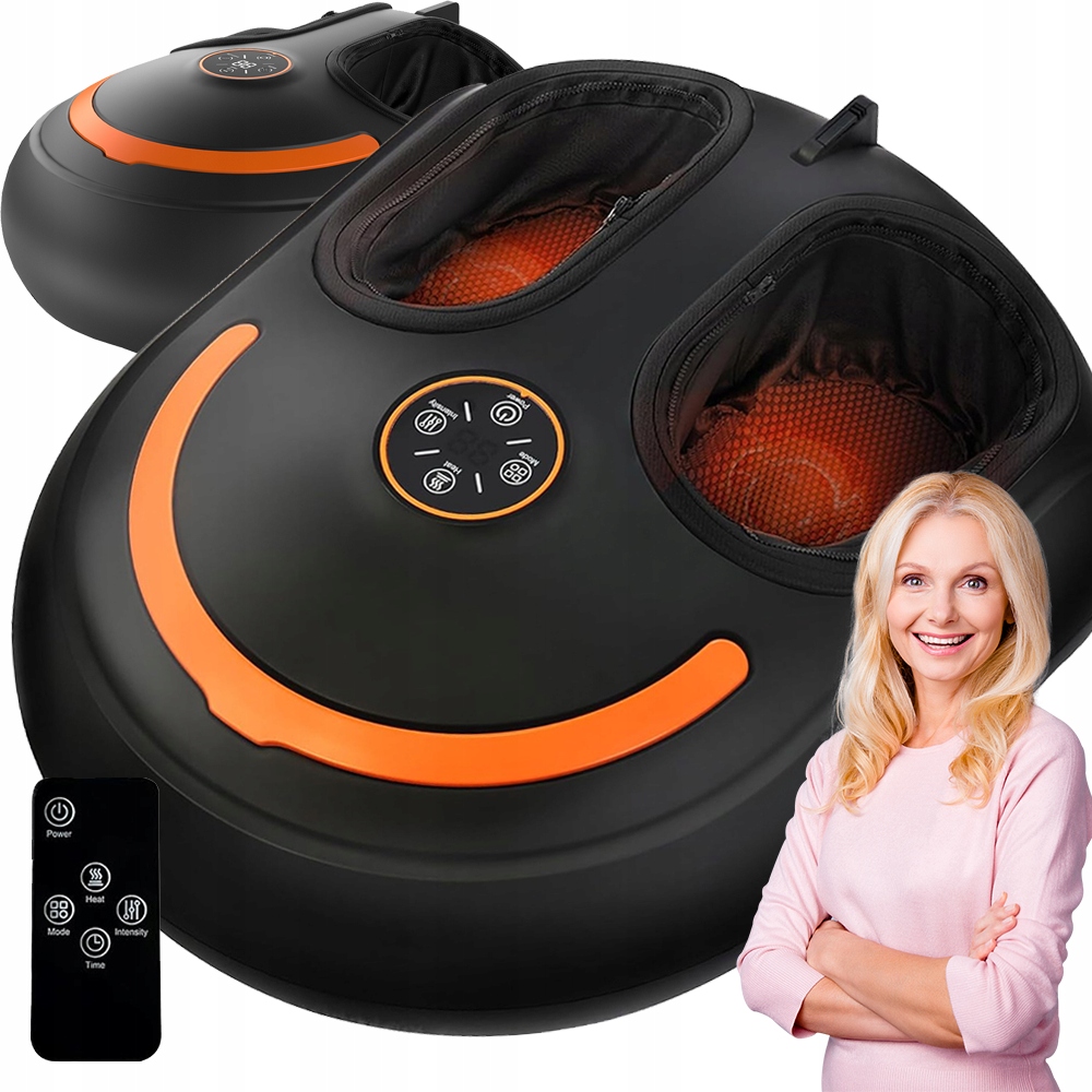 - Цей чорний масажер для ніг шиацу з підігрівом пропонує 4 режими масажу, 6 рівнів тиску повітря, 3 температури нагріву, кілька налаштувань таймера, сенсорний РК-екран і бездротове дистанційне керування.