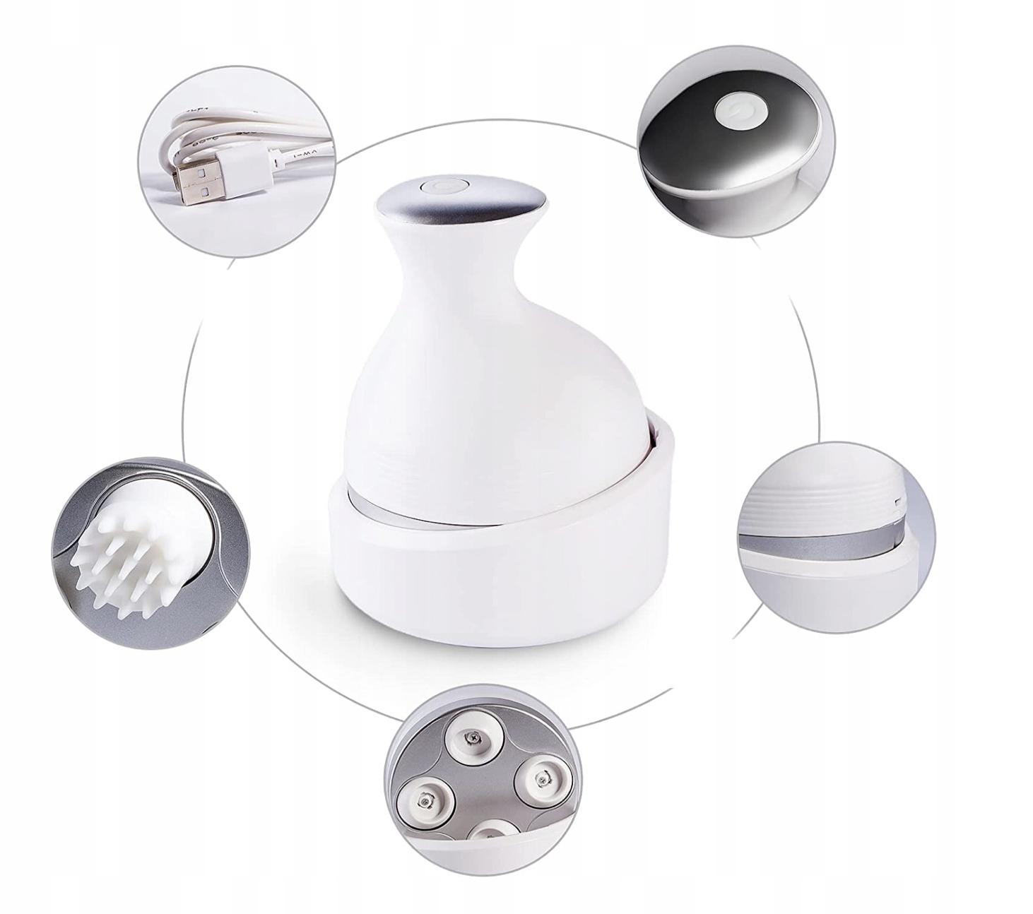 - В набір входить: Масажний пристрій, Зарядна база, Інструкція, USB кабель