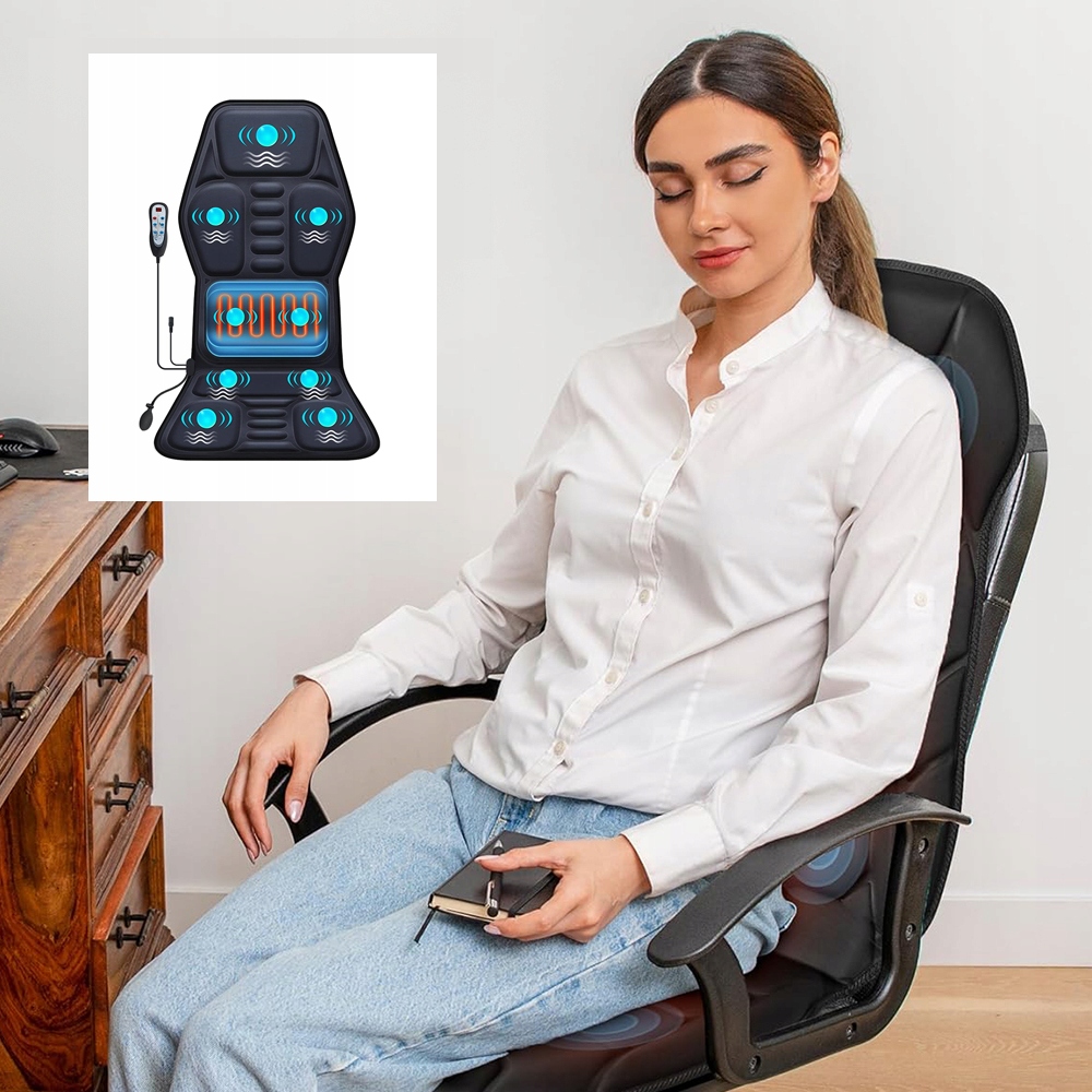 - Оснащений 7 масажними двигунами, масаж шиї, спини, стегон тощо допомагає зняти втому, стрес, напругу та біль.