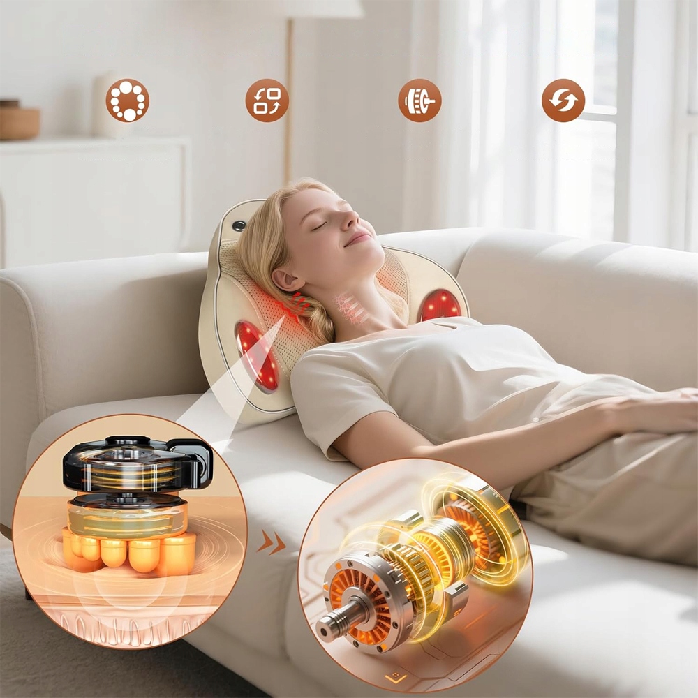 Глибокий масаж тканин: 💪 Два потужні двигуни та 20 масажних точок (2 головки x 10 кульок) імітують професійний масаж шиацу. Вони досягають глибини, щоб зменшити м’язову напругу.