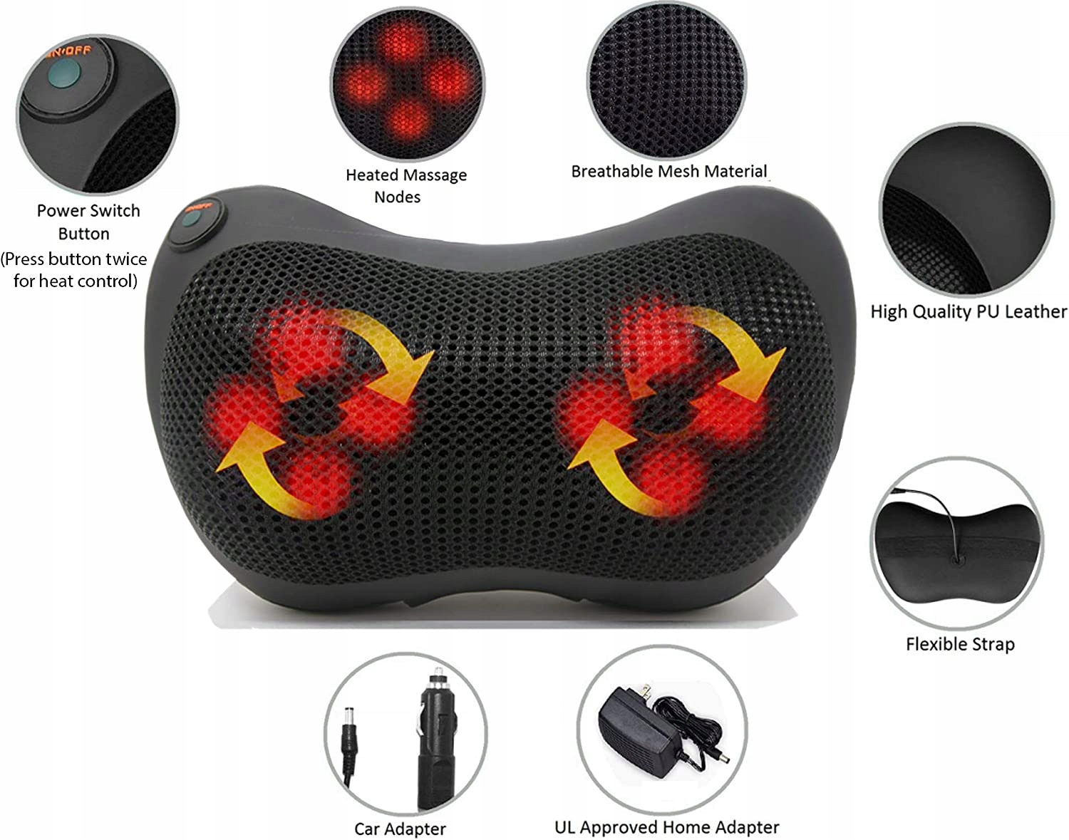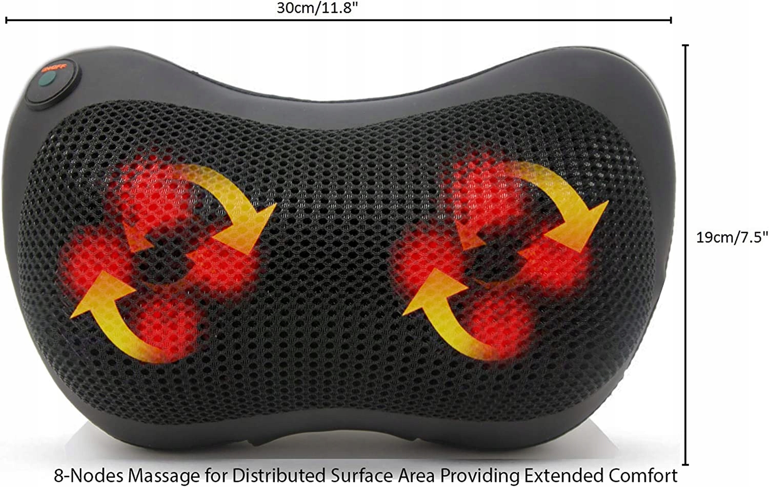 Масажна подушка шиацу з теплом - 8 місць для ефективного масажу, включаючи: шия, руки, ноги та спина - підходить для автомобіля та будинку.