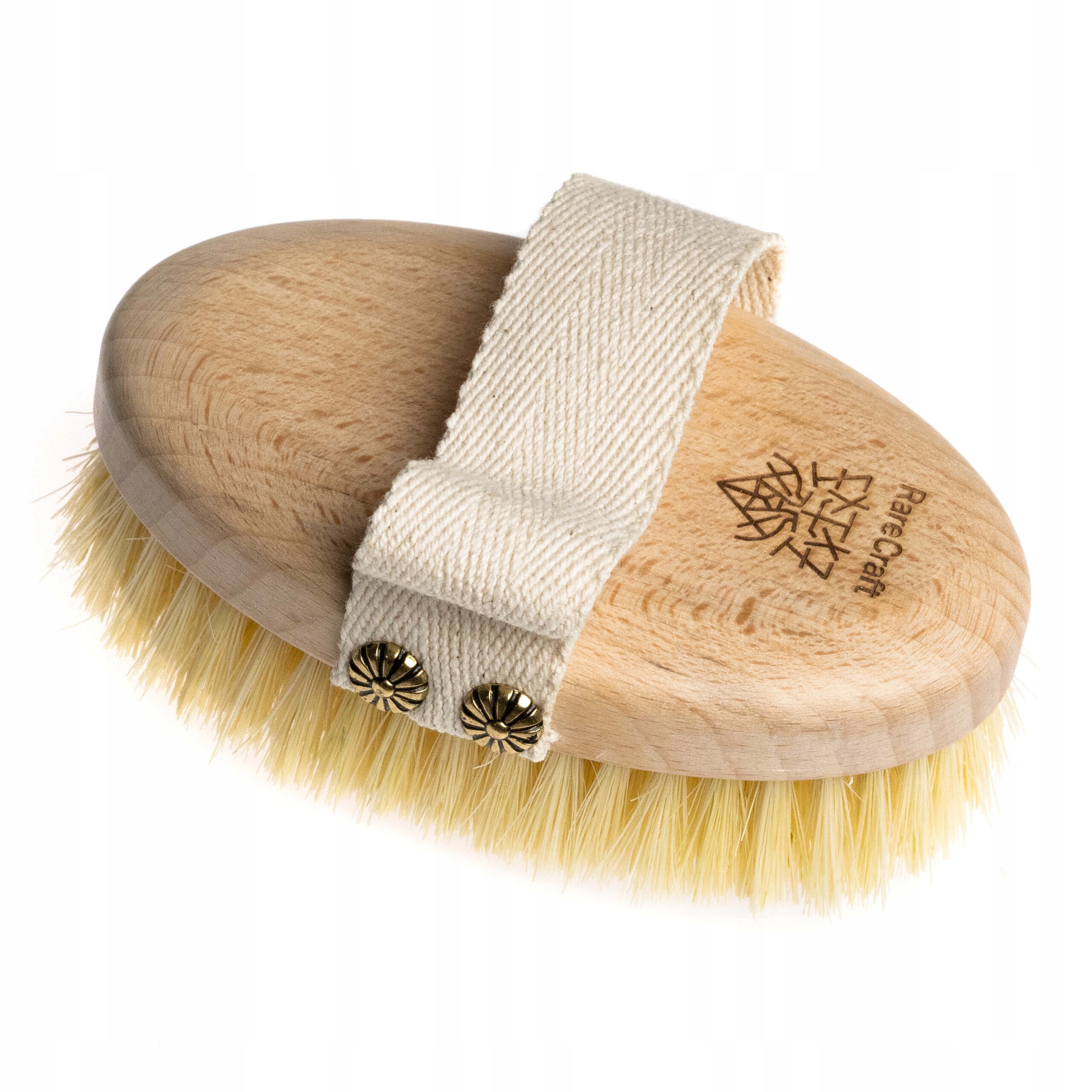 Повністю натуральна рослинна щітка для масажу тіла. Його основа виготовлена з букової деревини, до якої прикріплено волосся тампіко з кактуса агави. Ззаду прикріплена бавовняна стрічка, яка полегшує утримання виробу в руці під час масажу. Регулярне вживання продукту допоможе впоратися з проблемами, пов'язаними з набряком тіла і вагою в ногах, які можуть бути результатом багатьох дій і явищ. Крім того, використання щітки допоможе позбутися целюліту, огрубілої шкіри та неприємного врослого волосся. Продукт характеризується дією, яка полягає в глибокій стимуляції клітин шкіри та стимуляції кровообігу. Це, в свою чергу, покращує живлення тканин і зростання колагенових і еластичних волокон, що покращує їх кровопостачання і еластичність. Щетина також має відлущуючий ефект, позбавляючи від мертвих клітин шкіри. Масажуючи тіло, ви не тільки забезпечите йому виняткове розгладження і м'якість, а й комплексний пілінг. Якщо спочатку розчісувати тіло трохи боляче, не засмучуйтесь. Регулярно використовуючи продукт, ви звикнете шкіру до активності, і біль більше не буде відчуватися, що дозволить вам зосередитися на більш приємній частині масажу. Щітка упакована в стильну коробку RareCraft з великою кількістю корисної інформації.