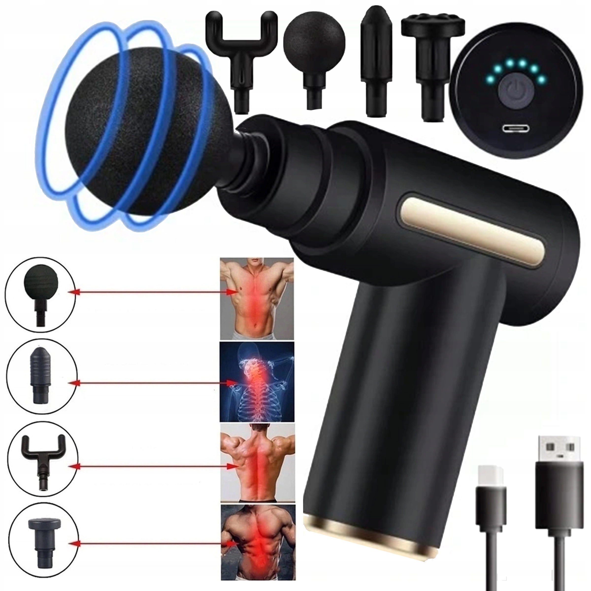 МАСАЖНИЙ ПІСТОЛЕТ ДЛЯ СПИНИ ТІЛО СТОПИ 4 НАКОНЕЧНИКИ МАСАЖНИЙ ПІСТОТОЛЬ ВЕЛИКИЙ