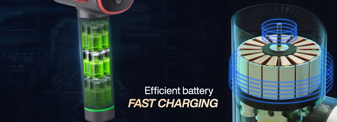 Ємність батареї - потужність без обмежень: батарея Medivon Gun Pro X2 розроблена для тривалого використання. Ефективний двигун і технологія Quick Charge дозволяють насолоджуватися масажем протягом багатьох годин на одній зарядці.