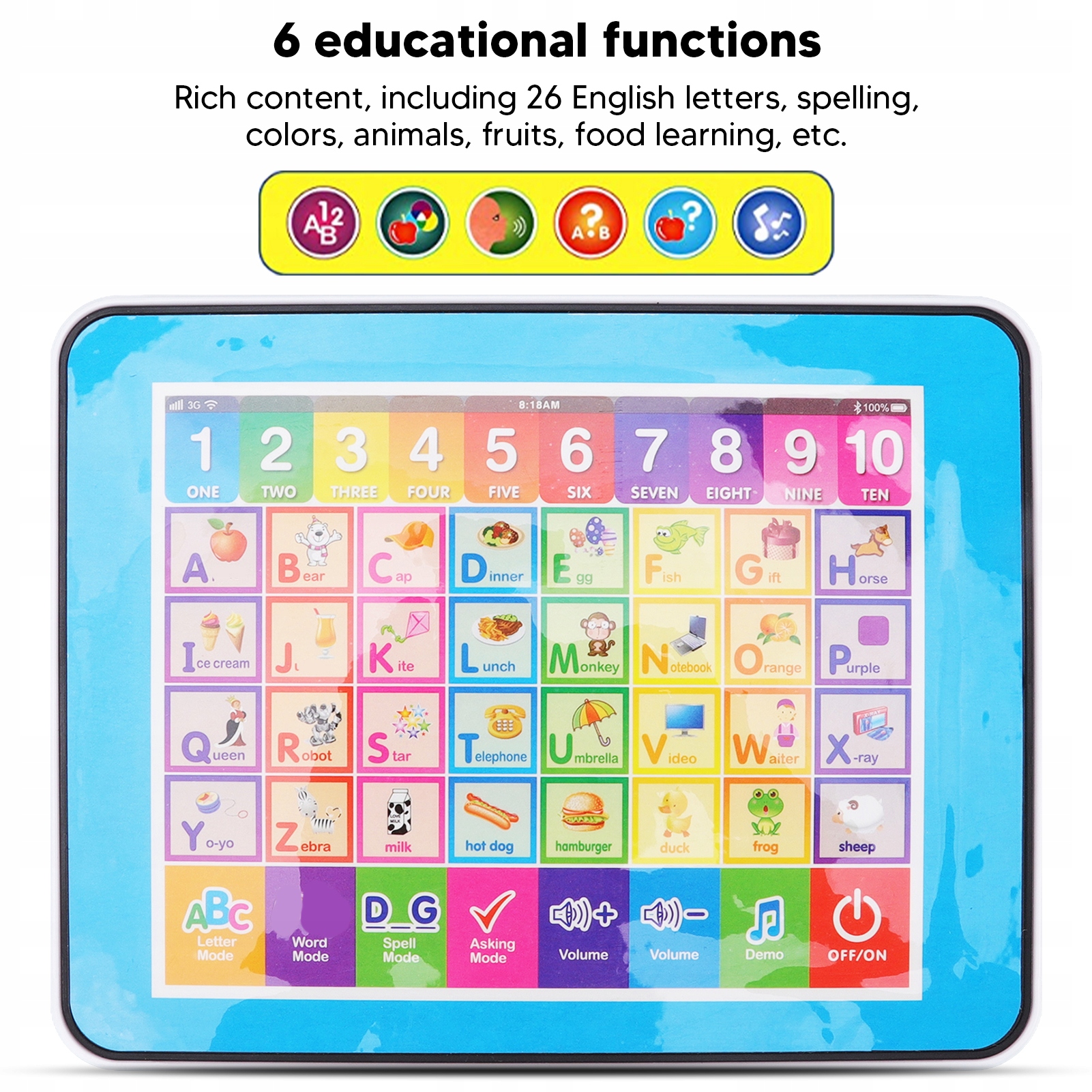 1. 6 освітніх функцій. Машина для вивчення англійської мови для дітей має 6 унікальних освітніх функцій для дітей раннього віку, включаючи 26 літер, 26 слів, 10 кольорів, 10 цифр і 3 рими.