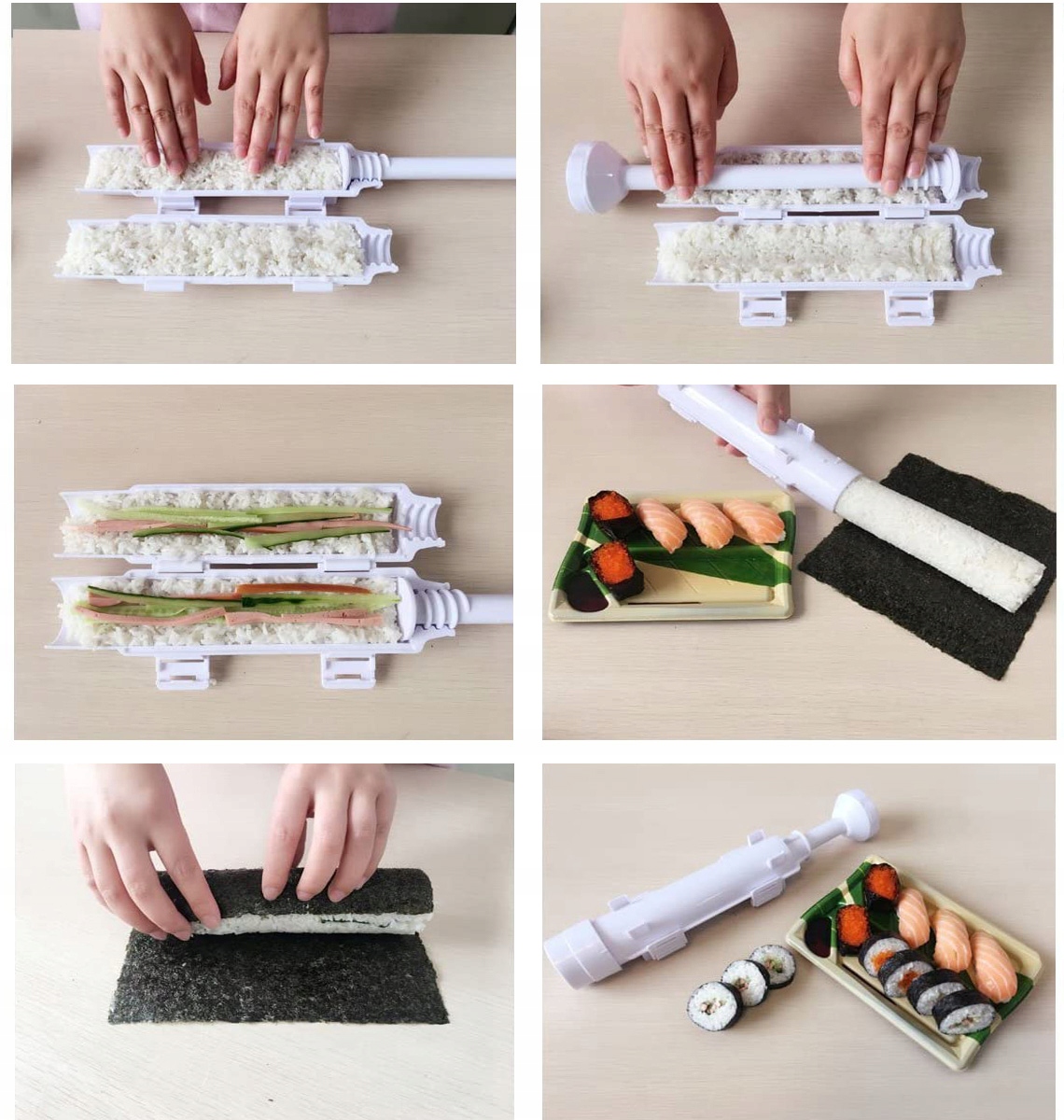 Ролик для суші простий у використанні та забезпечує рівномірне скручування суші без необхідності спочатку опанувати мистецтво скручування суші вручну. Ви можете використовувати його для приготування різноманітних суші, зокрема суші з лососем, огірком, авокадо тощо.
