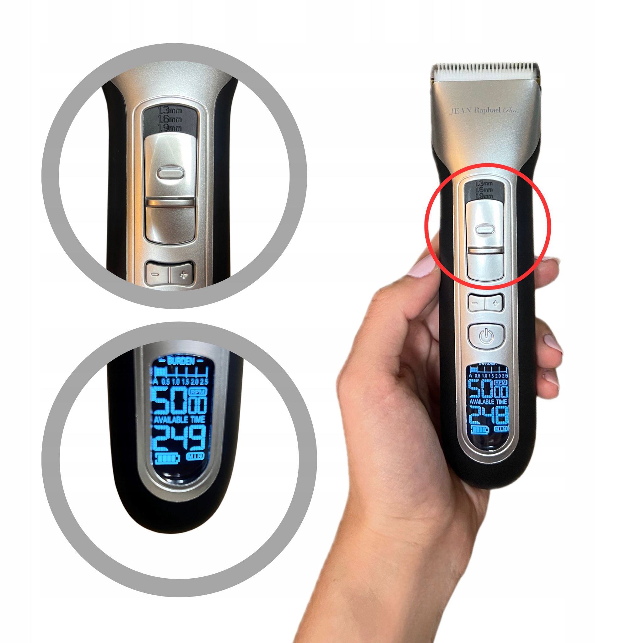 машина jean raphael paris probutura оснащена вбудованим перемикачем, щоб змінити висоту зрізу , що значно підвищує його функціональність та точність під час роботи. Завдяки цьому інноваційному рішенню користувачі мають можливість швидко регулювати довжину різання до чотирьох різних налаштувань: 2,1 мм, 1,9 мм, 1,6 мм та 1,3 мм .