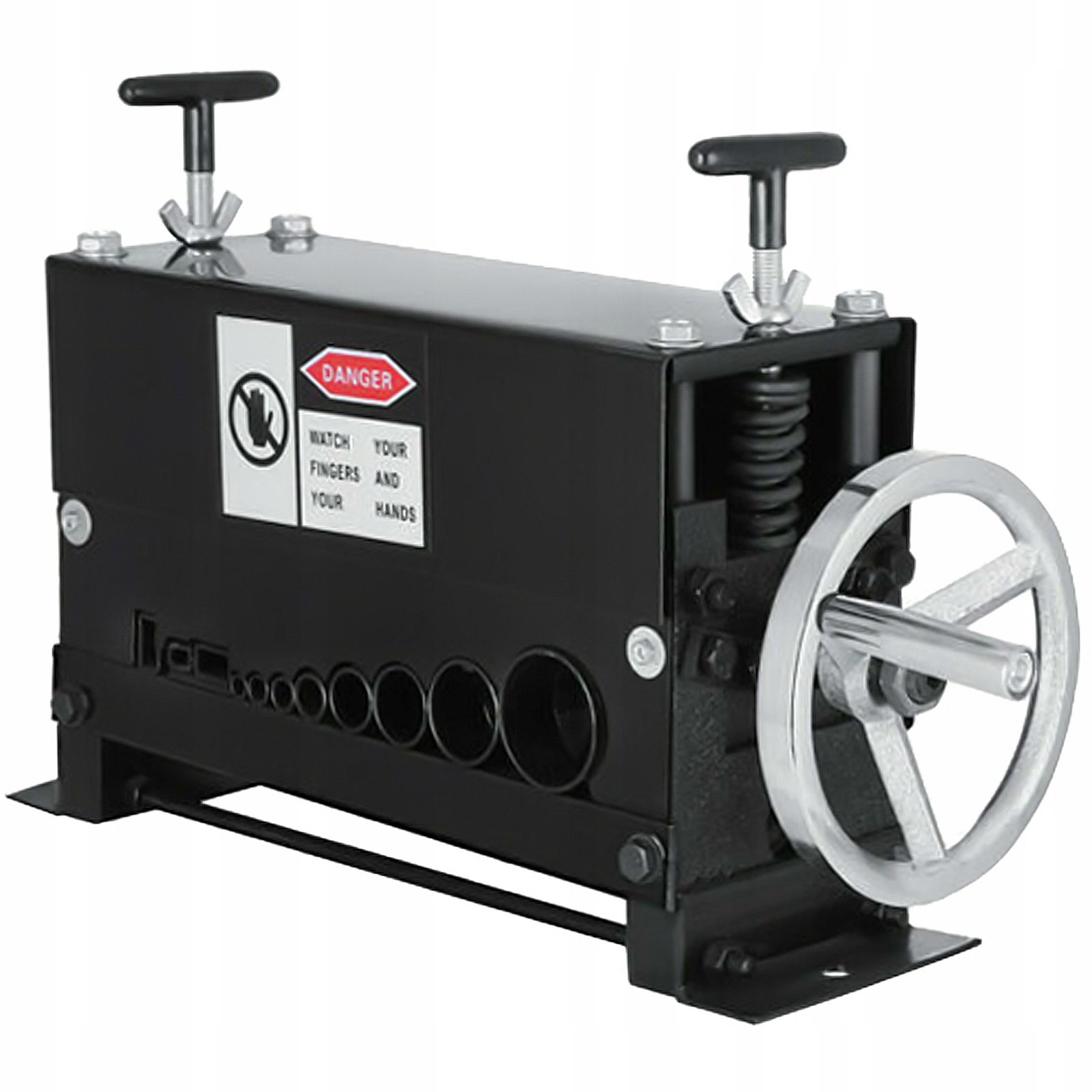 Машина для ручного зняття ізоляції оснащена 11 ріжучими колесами для видалення брухту з мідного дроту. Знімає дроти з упором від 1,5 мм до 38 мм. Загалом, ця машина може видаляти пластикову та гумову ізоляцію з непошкодженого дроту, закріпленого переробленого мідного дроту та закріпленого неізольованого чистого мідного дроту.
