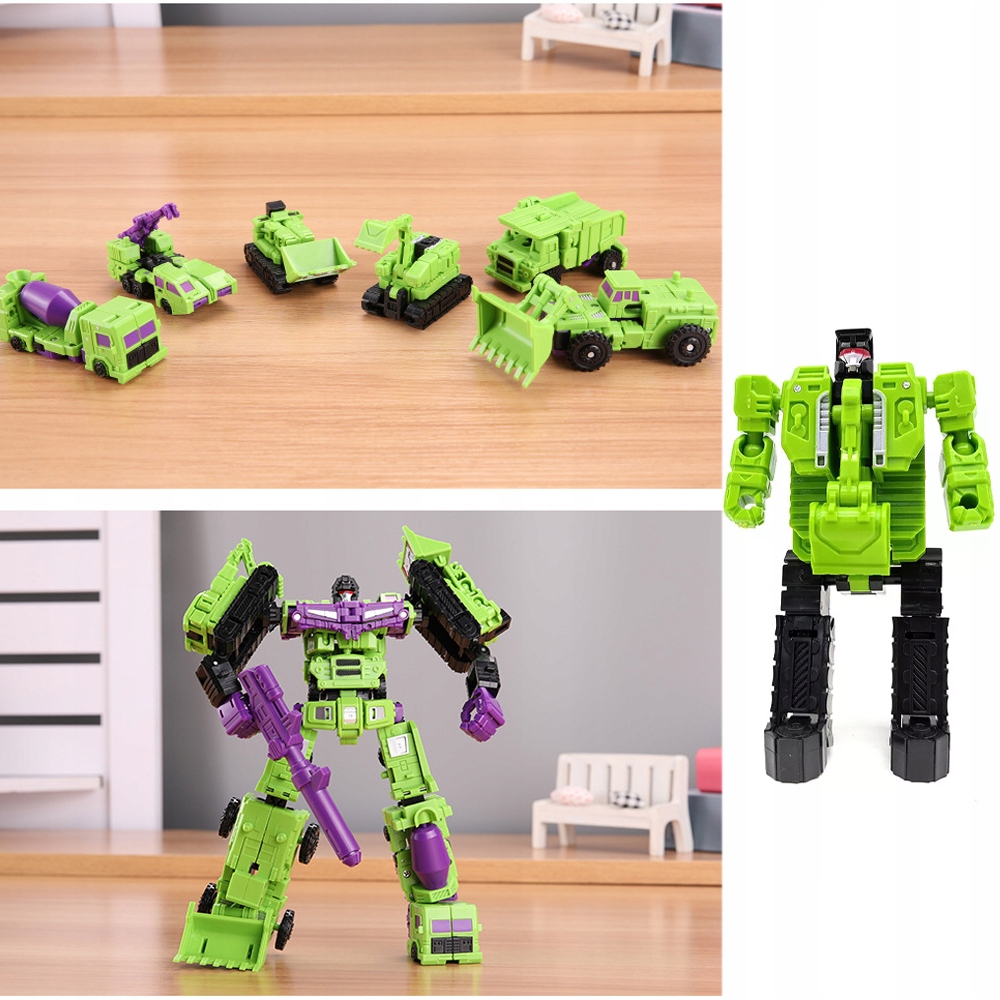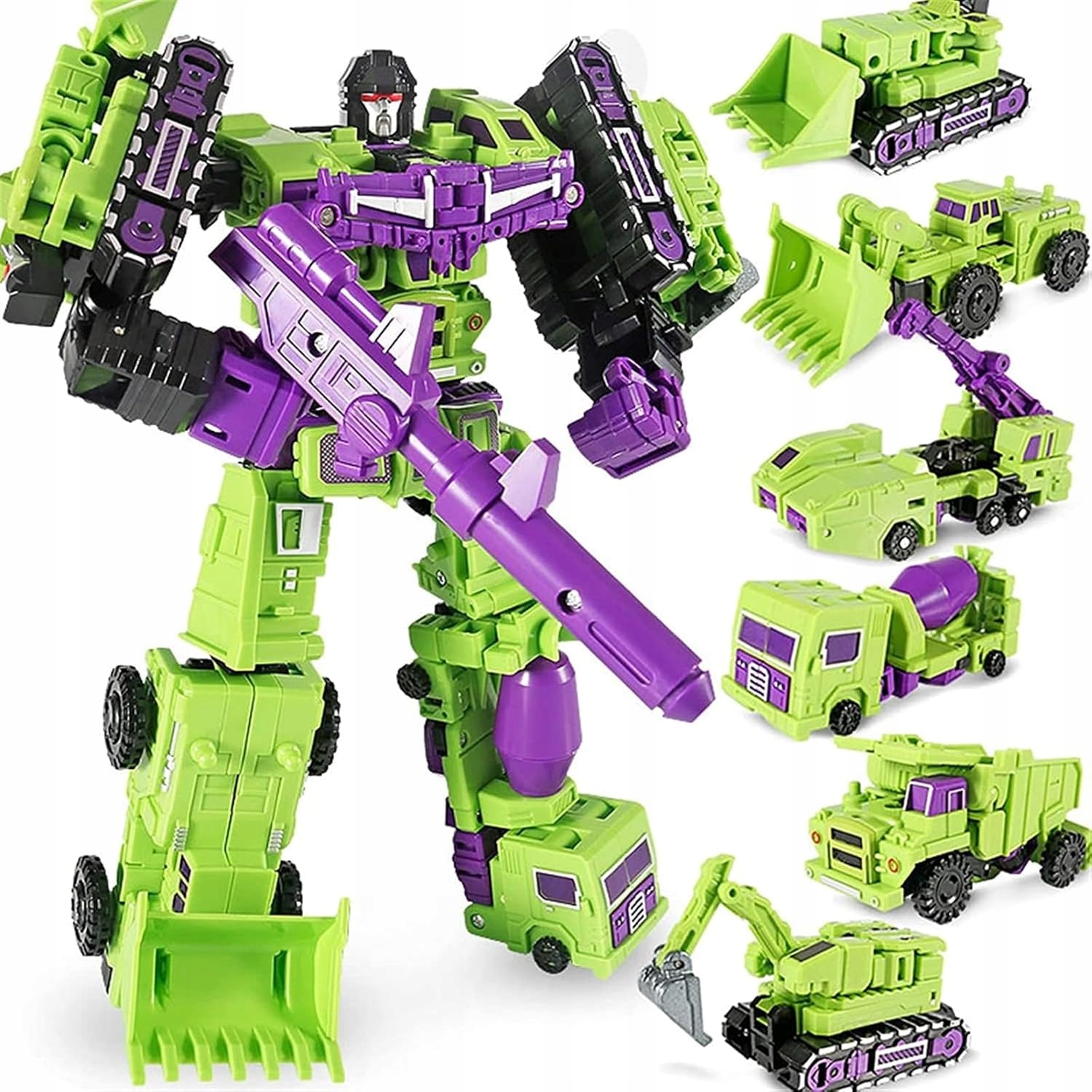 - 🤺Міні інтегрована інженерна серія: використовує конструкцію 6 в 1, що складається з бульдозера, бетономішалки, навантажувача, крана, екскаватора та самоскида , який може вручну змінювати форму автомобіля та форму робота.