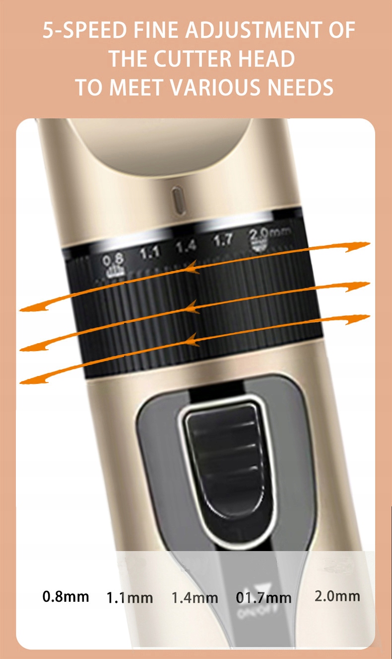Велика нова зручна машинка для стрижки собак оснащена 4-ступеневими захисними гребінцями (3 мм/6 мм/9 мм/12 мм) і 5-ступінчастим тонким регулюванням заточування (0,8 мм/1,1 мм/1, 4 мм) /1,7 мм/2,0 мм), що дозволяє вільно контролювати своїх домашніх тварин, як вам потрібно, навіть якщо ви раніше не використовували.