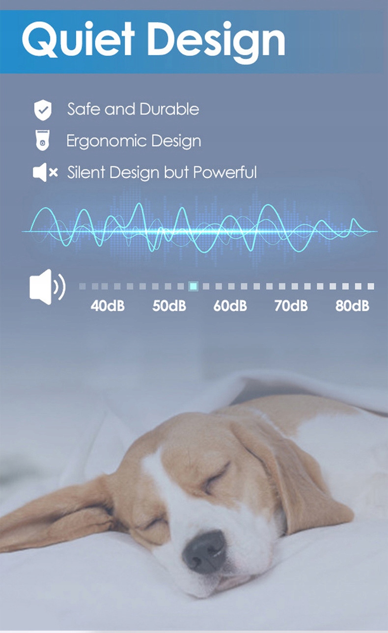 Бездротовий і простий у використанні Бездротовий і легкий, цей машинка для стрижки собак має вишукану і міцну структуру, низький рівень шуму, який не лякає ваших собак, і ви можете легко і швидко підстригти їхню шерсть! Підходить для використання вдома або під час подорожей.