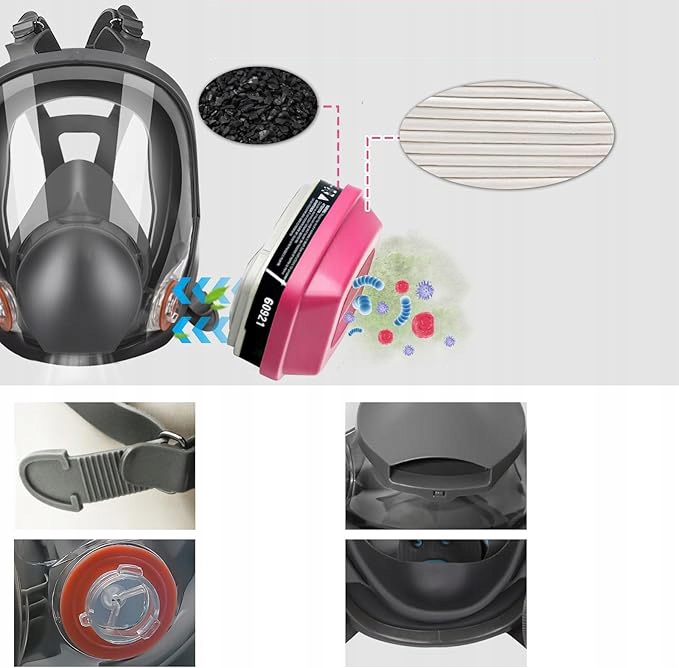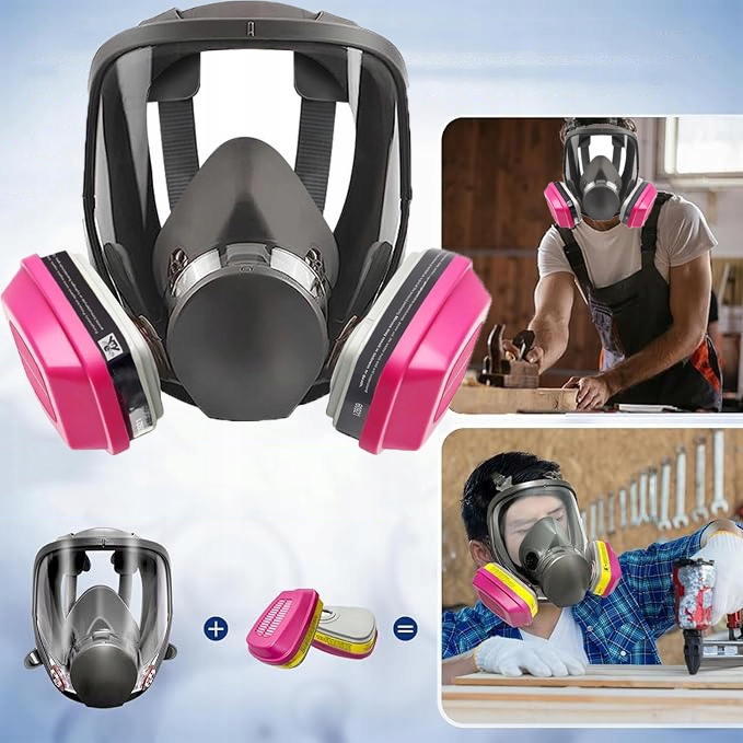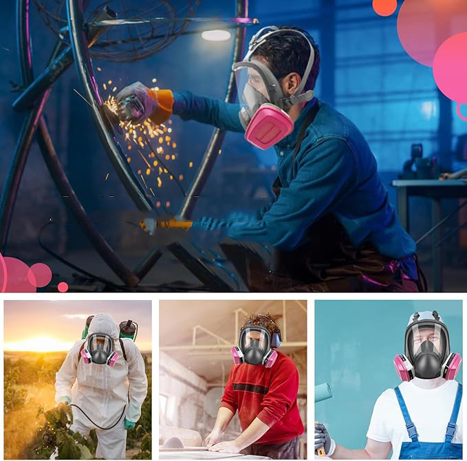 ression 【Матеріал】 Виготовлений з м'якого, гнучкого силікону з сильними ущільнювальними властивостями. Завдяки м'якому силікону, дотик на шкірі обличчя не викликає дискомфорту. Пов'язку на голову респіратора можна вільно відрегулювати. Він був розроблений з точним підходом і підходить до більшої частини голови. Використовуйте】 має широкий спектр застосувань і підходить для операцій, що містять шкідливі речовини в повітрі, включаючи зварювання, отримання деревини, полірування, експериментів, обприскування та інших операцій. Завдяки нашій повній масці, ви можете ідеально захистити себе.