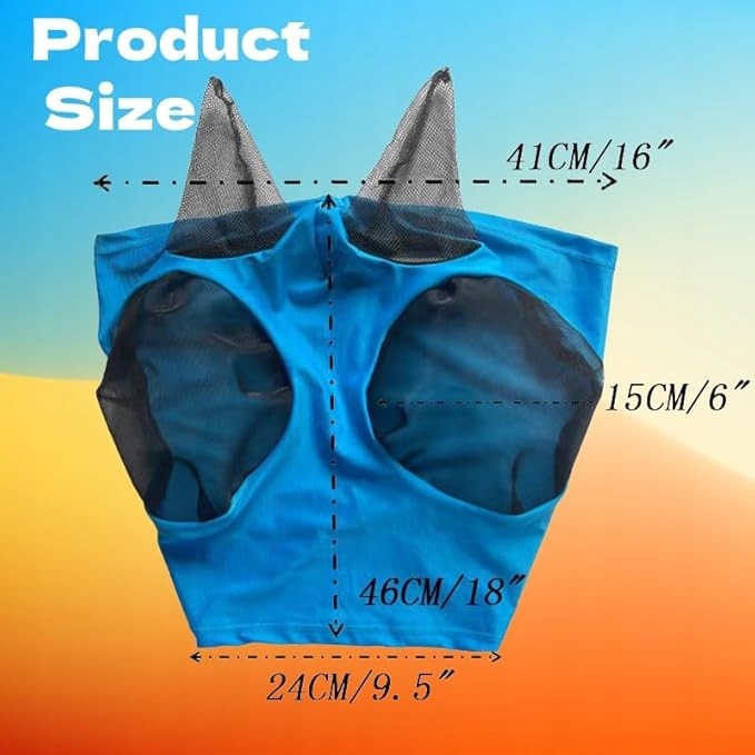 - 2- СУПЕРЕЛАСТИЧНИЙ МАТЕРІАЛ: Ця інноваційна маска від комах для коней виготовлена з дуже гнучкої тканини, м’якої та зручної. Еластичність маски для коней дозволяє масці прилягати до шкіри, а технологічно передовий, дихаючий матеріал, що відштовхує комарів, забезпечує приємний для шкіри захист і охолодження.