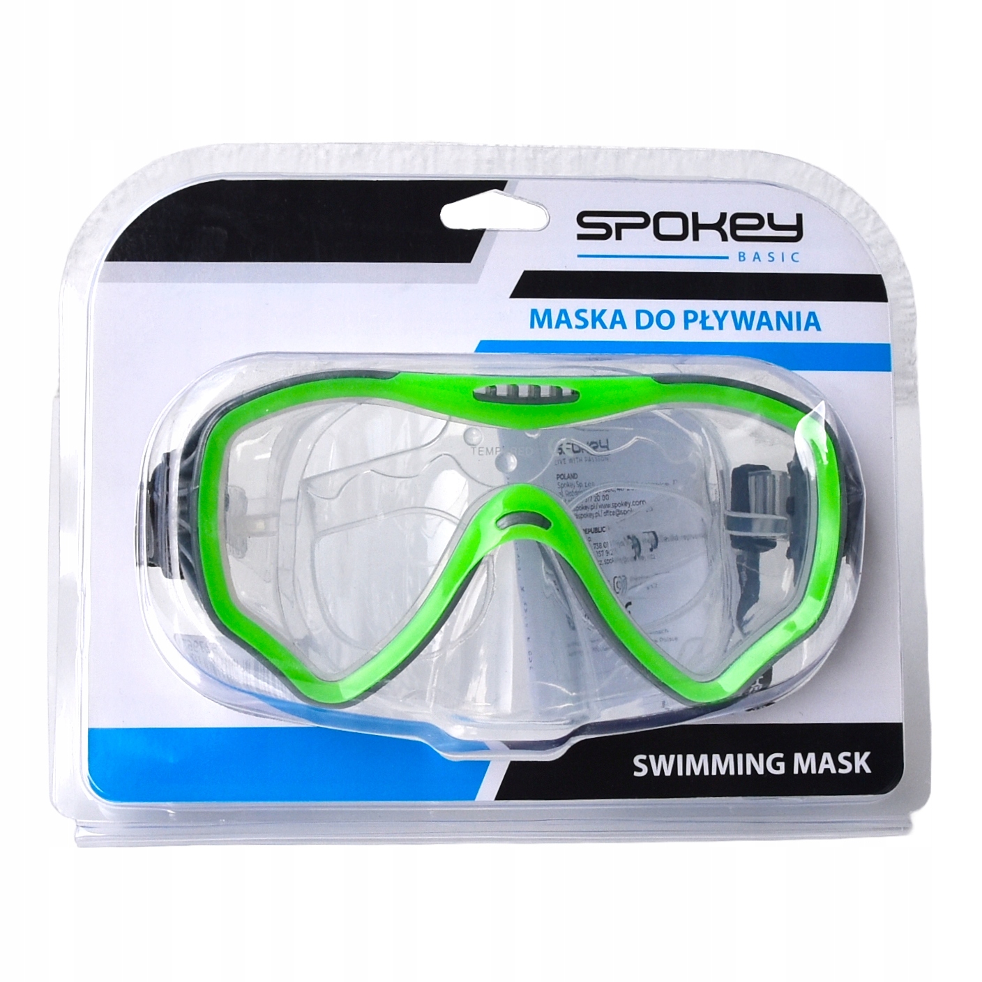 Маски для дайвінгу Spokey виготовлені за найновішими технології. Вони ідеально герметичні, що запобігає потраплянню води всередину під час занурення. Скло маски виготовлено із загартованого TG скла, каркас – з ПВХ, комір і лямка – з м’якого силікону.