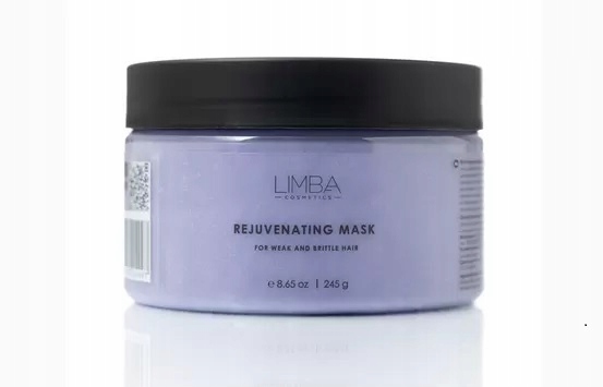 Маска Limba Cosmetics Rejuvenating Mask призначена для домашнього догляду за ослабленим і ламким волоссям. Маска робить волосся сильним, еластичним і шовковистим, полегшує розчісування і повертає волоссю природний блиск. Гідролізований кератин і колаген сприяють активному відновленню волосся зсередини, підвищують його міцність і повертають еластичність. Гідролізовані протеїни пшениці та рису створюють на волоссі захисний бар'єр від негативного впливу зовнішніх факторів. Гідролізовані протеїни шовку сприяють зміцненню ослабленого волосся, полегшують розчісування та усувають завивку, роблячи волосся гладким. Кераміди допомагають утримувати вологу у волоссі, запобігаючи ламкості та посіченню кінчиків.