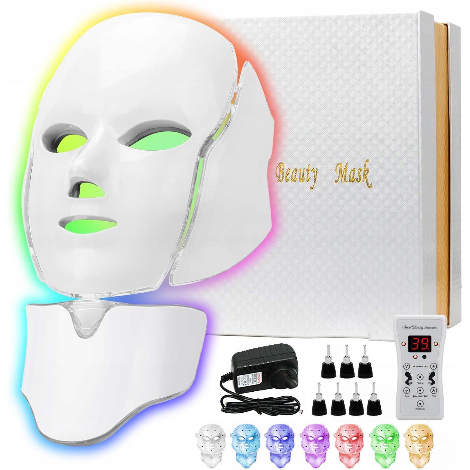 МАСКА СВІТЛОДІОДНОЇ ФОТОННОЇ ТЕРАПІЇ ДЛЯ ОБЛИЧЧЯ, ШИЇ ТА ГРУДІ З 7 КОЛІРАМИ СВІТЛА