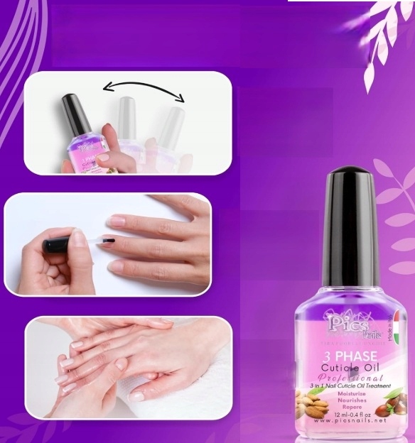 Як використовувати?: Збовтайте олію для кутикули до однорідності. досягається фіолетовий колір. Нанесіть на кутикулу і помасажуйте круговими рухами, потім почекайте кілька хвилин (1-2 хвилини). Використовуйте олію для кутикули щодня, при необхідності кілька разів на день, щоб зволожити контур нігтя.