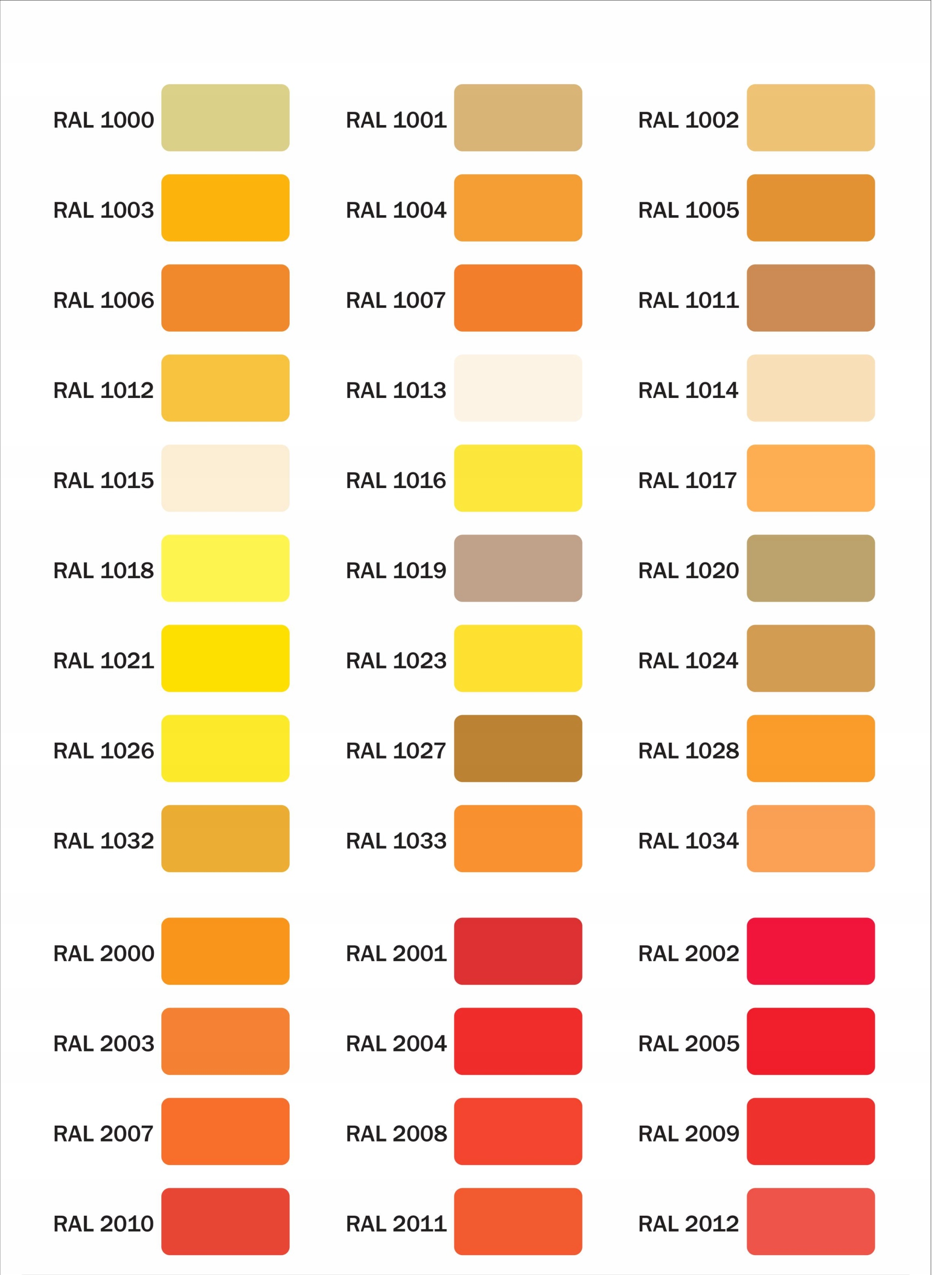 жорстких верхніх кольорів від RAL -шаблону
