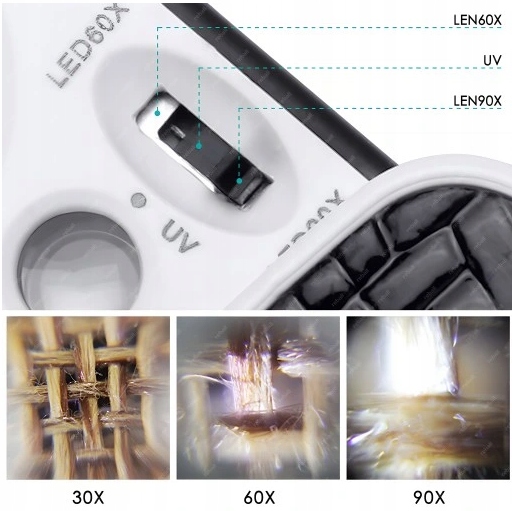 Портативний світлодіод Lupa + УФ - Спеціальна оцінка ювелірних виробів, 30x/60x/90x Збільшення