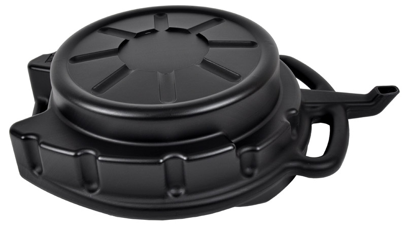 Форма чаші запобігає розливанню масла. Має воронку для спорожнення.