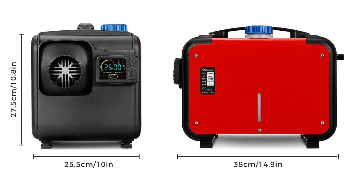 - Дизельний додатковий обігрівач підходить для автомобілів, караванів, вантажівок, яхт, трейлерів, будинків, гаражів, магазинів, наметів тощо. Обігрівачі маленькі, легкі, прості у використанні та швидко нагріваються.