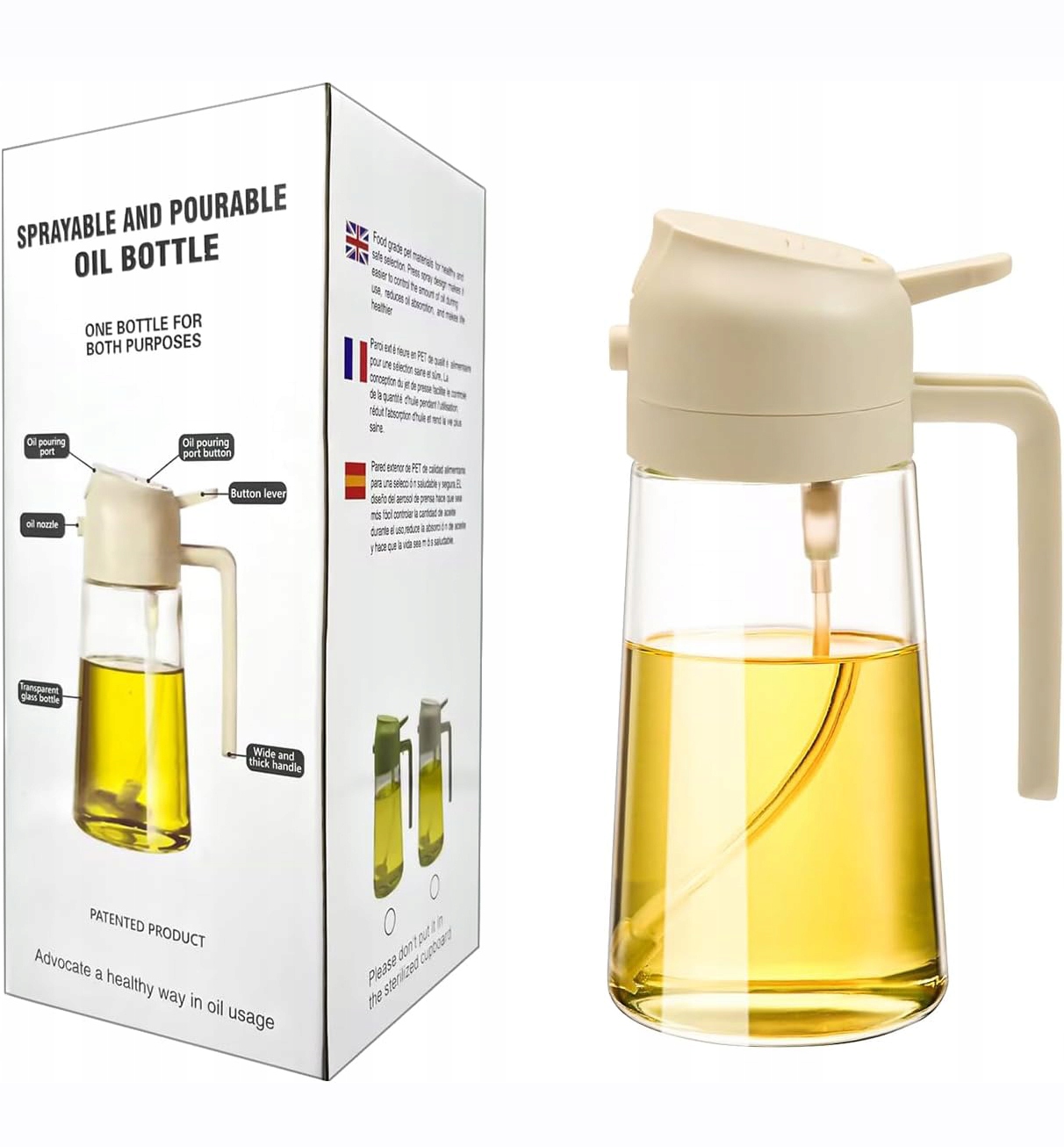 🍾 Подвійна функція та універсальність: Пляшка для розпилення олії для приготування їжі пропонує зручність як розпилення, так і виливання нафти, що підходить для різних процесів підготовки їжі, таких як одягання, обсмажування, випивання Гриль та випічка в духовці. Прозорий скло дозволяє користувачам легко стежити за рівнем масла, що робить зручним для використання та управління. Пляшка з розпиленням олії сприяє екологічній практиці, оскільки її можна легко очистити вручну або в посудомийній машині та повторне використання. Здоров'я, дизайн нефабрикувальних рук: спрей з оливковою олікою було розроблено спереду, з прозорою насадкою та задньою зручною ручкою, що дозволяє користувачам отримувати делікатну, односторонню туман. Користувачі можуть наливати або розпилюючи олію, не отримуючи руки, забезпечуючи чистий та безладний досвід наливання або розпилення олії.