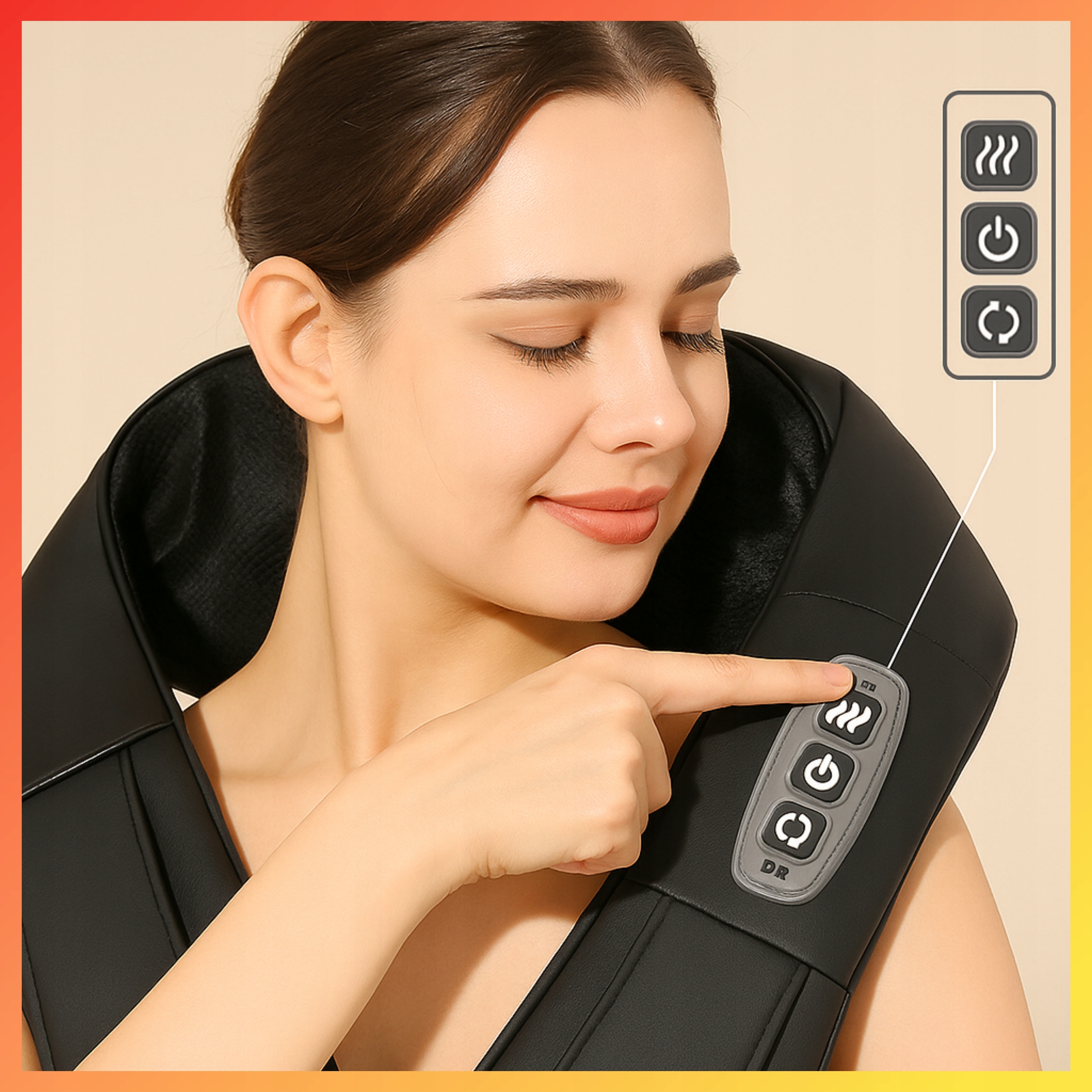 Пристрій оснащений двома анатомічними головами з 16 точками масажу (8 на сторінку). Ви можете змінити напрямок обертання голови, роблячи масаж більш природним та ефективним. Ідеально підходить для напружених м’язів шиї, спини, плечей або стегон.