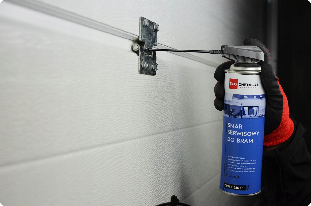 Він захищає частини від вологи та корозії, а також дозволяє воротам підтримувати оптимальну роботу навіть взимку за дуже низьких температур, оскільки температурний діапазон коливається від -40°C до 80°C. Не викликає прилипання бруду та пилу до змащених елементів, таким чином зберігаючи чистоту обслуговуваних поверхонь. Крім того, він усуває скрип і скрегіт, а також послаблює роботу працьовитих механізмів: