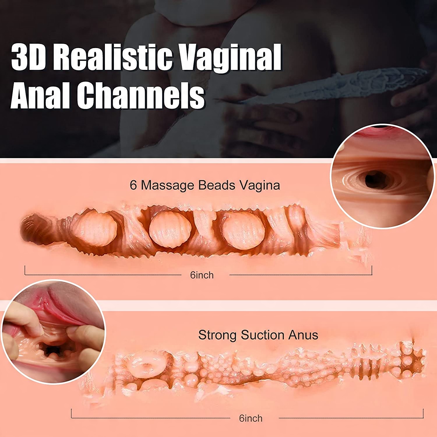 Ця чоловіча секс-іграшка розроблена з двома окремими щільно закритими вагінальним і анальним тунелями. М'яка стінка піхви вистелена 6 гнучкими великими намистинами, покритими лініями. Перлин в задньому проході менше, ніж у піхві.